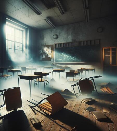 По сценарию нейросети сгенерированы 8 страшных изображений школе при помощи OpenAI.