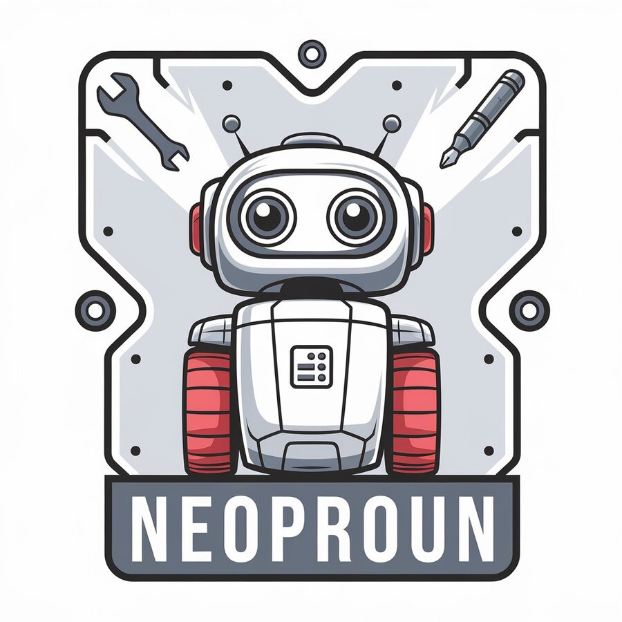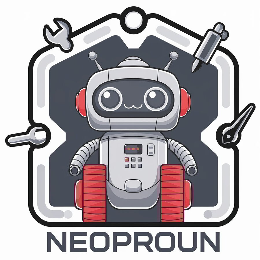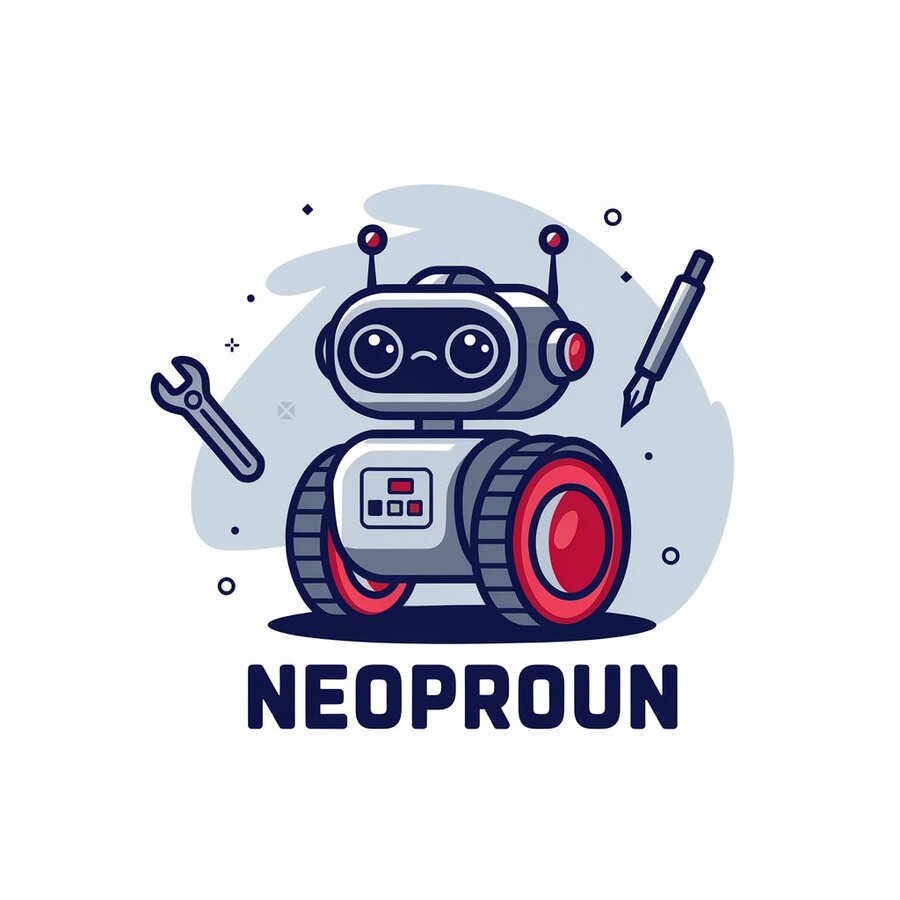 prompt: generate a minimalistic logo for a company producing children’s robotics constructor in beige, silver and red tones, modern, no shadows, vector, simple, low detail, company name — ‘NEOPROUN’