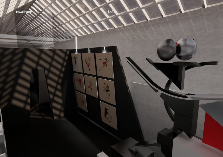 пространство сгенерировано на основе центрального зала выставки исходного проекта