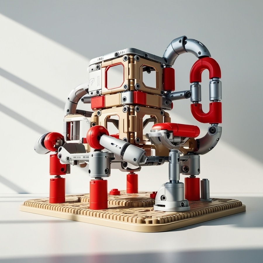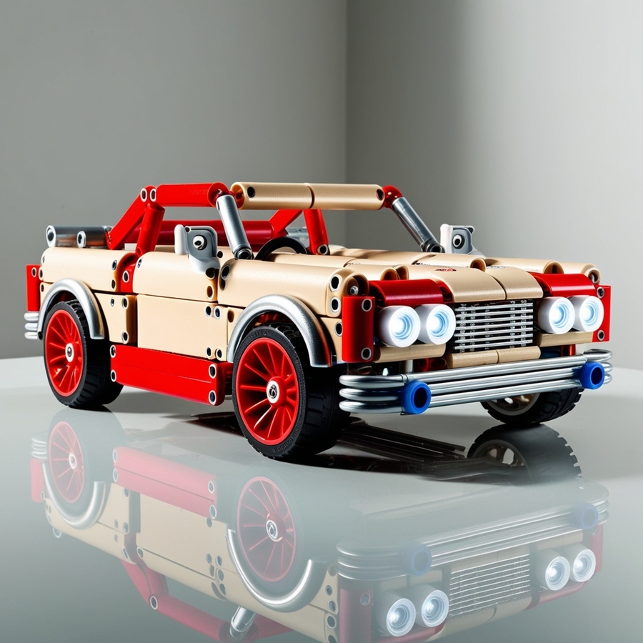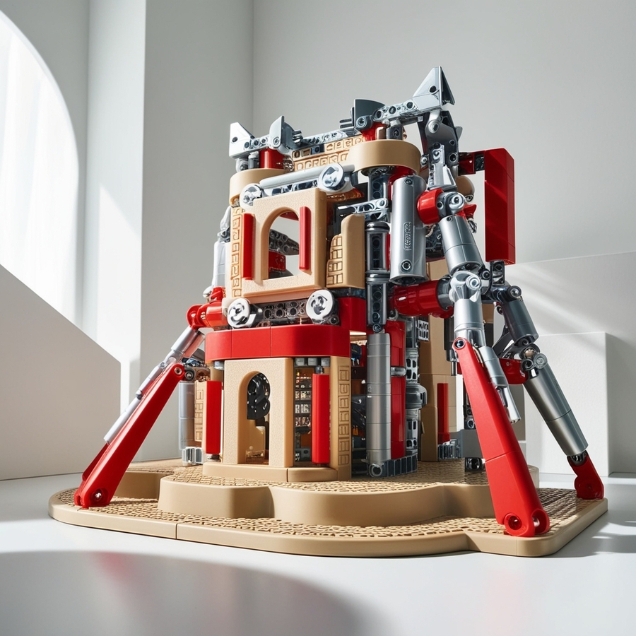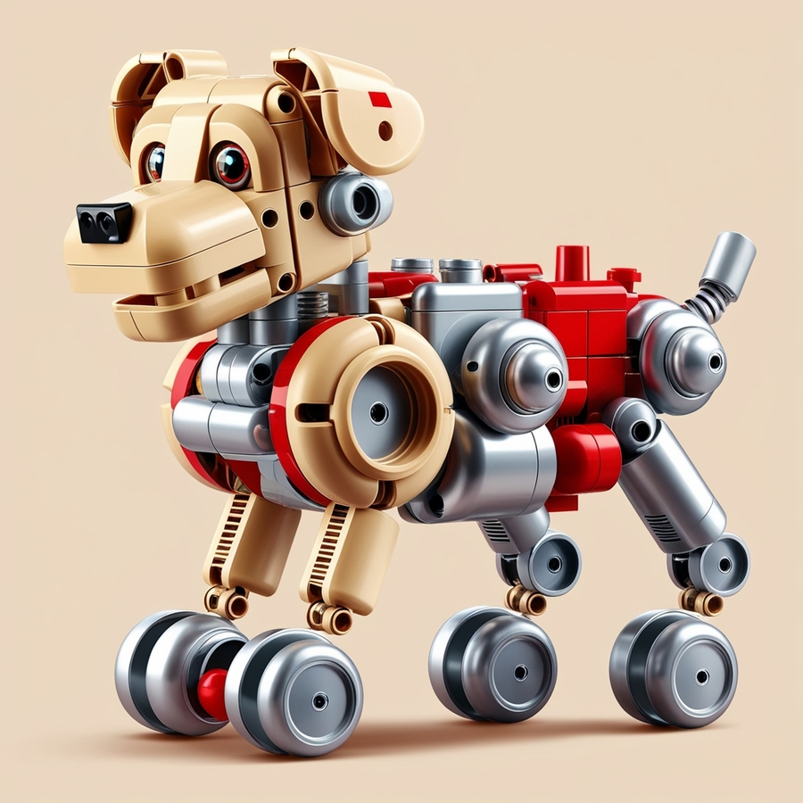 create a robot/dog/car/building from the children’s robotics construction set in beige, red and silver colours