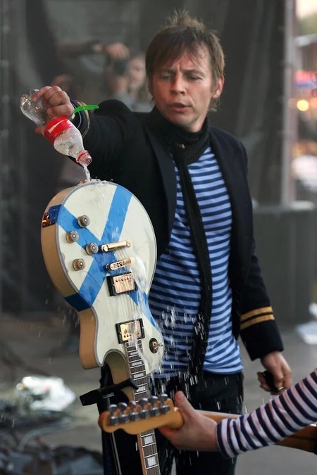 «Суперзвезд у нас есть (было) как бы две — Лагутенко (которого я терпеть не могу) и Земфира (которую я люблю). Потому что суперзвезда — это человек, который способен вести себя на сцене так, как будто это не сцена, а прихожая дома, где можно ходить черт знает в чем, вести себя черт знает как и делать, собственно, черт знает что».