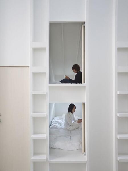 Гостевой дом для молодых людей со всего мира в Коя-сан, главном храме Сингон, основанной 1200 лет назад, который внесен в список Всемирного наследия ЮНЕСКО. Он представляет собой сочетание японского капсульного отеля, где конфиденциальность хорошо защищена, и общежития, где гости активно общаются. Каждый одноместный номер выходит прямо в холл, чтобы вы могли выбрать подходящее расстояние до других гостей, обеспечивая приватность. Выбор тонкой деревянной конструкции, благодаря которой нагрузка на одну опору относительно невелика, видимость инженерных коммуникаций для облегчения обслуживания и простота композиции пространства позволяют не только владельцу этого гостевого дома, но и гостям поддерживать, модифицировать и использовать эту архитектуру в течение долгого времени.