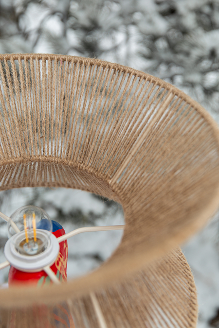 Technique: papier-mâché Material: metal frame, cardboard, interior paint, varnish, jute thread.