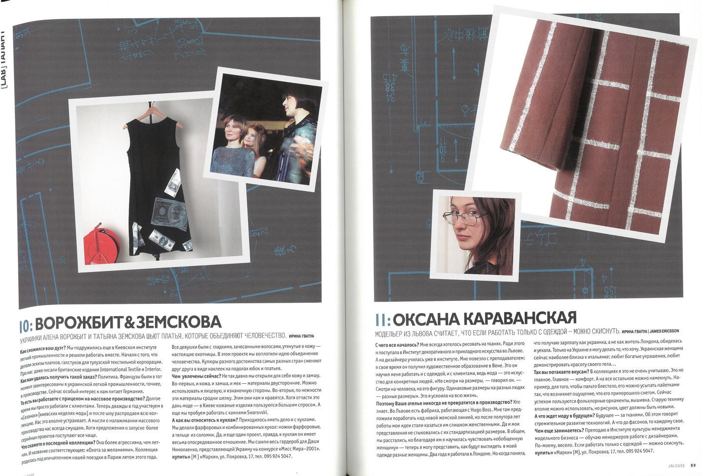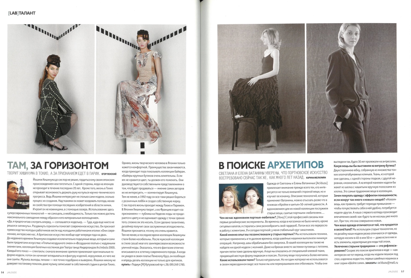 Интервью с дизайнерами: Наташа Миловидова (Россия), Наташа Зяблова и Ольга Бойко (Россия) в Jalouse, апрель 2002