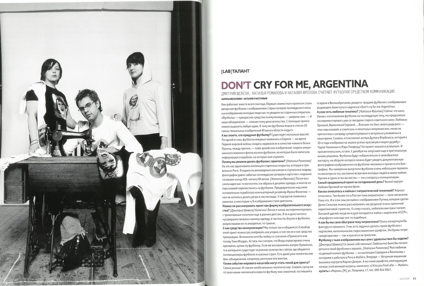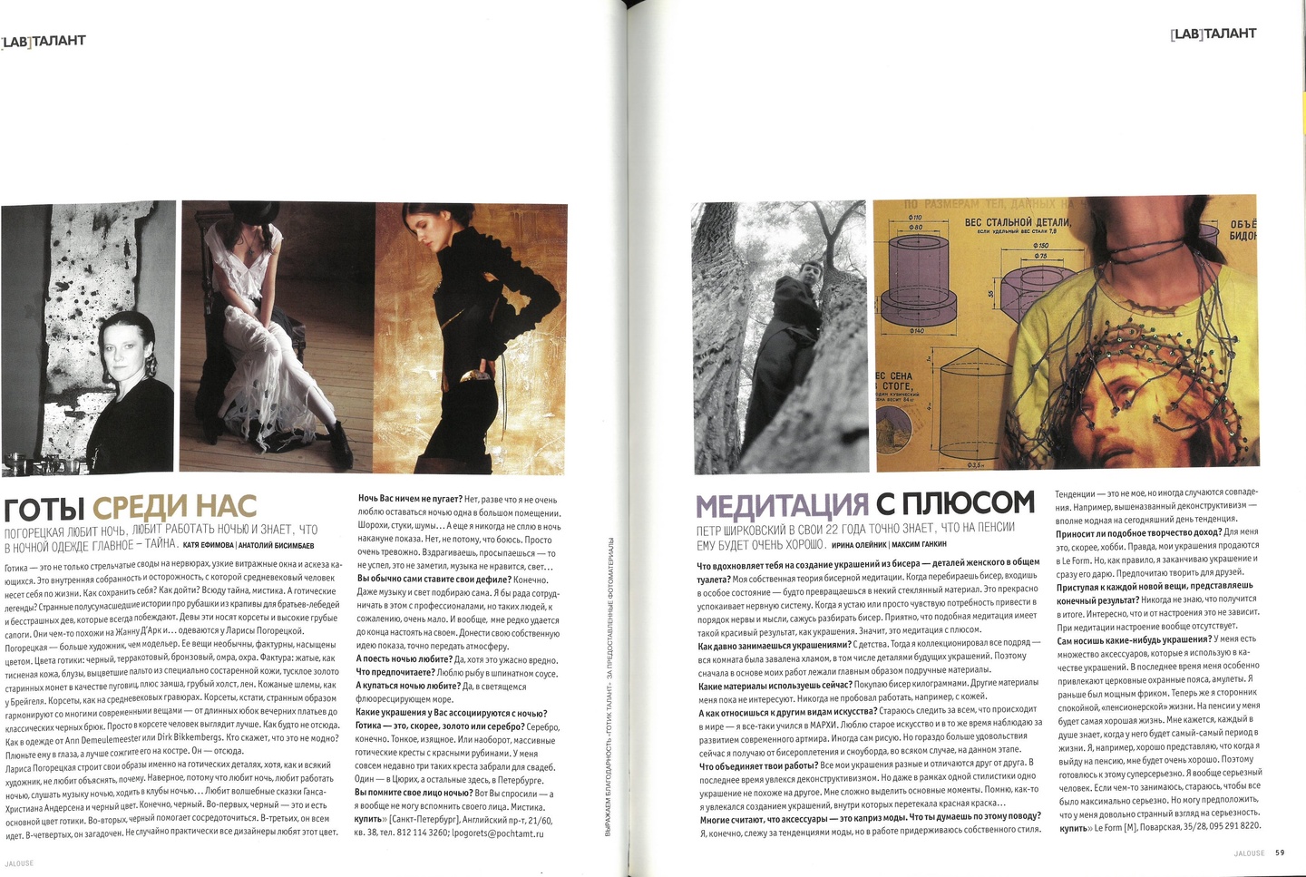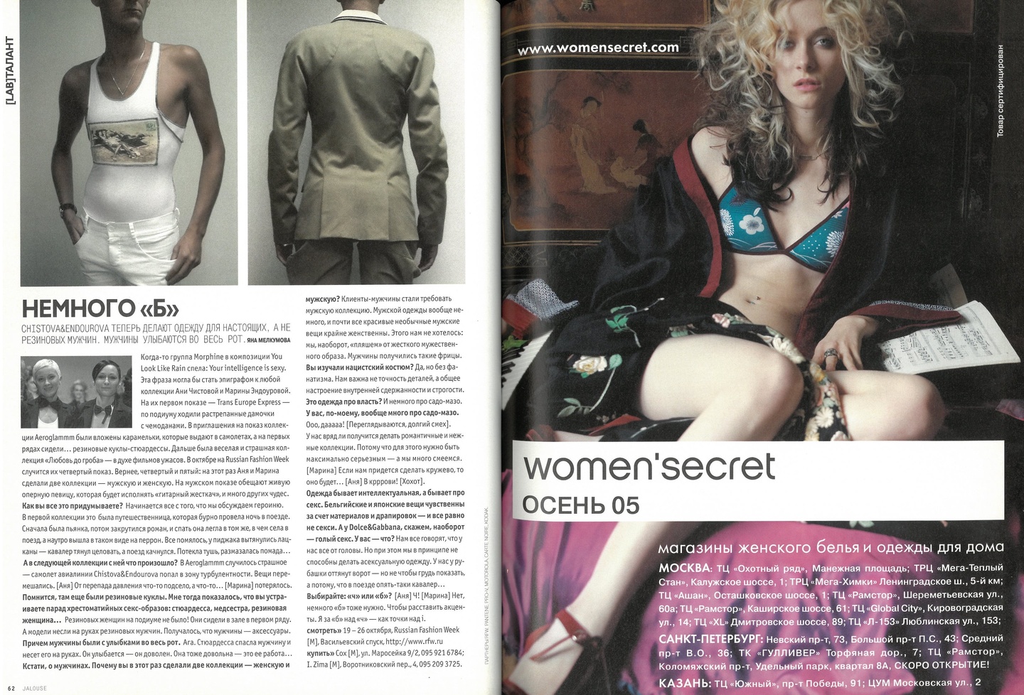 Интервью с дизайнерами: Дмитрий Логинов (Россия), Аня Чистова и Мария Эндоурова (Россия) в Jalouse, октябрь 2005