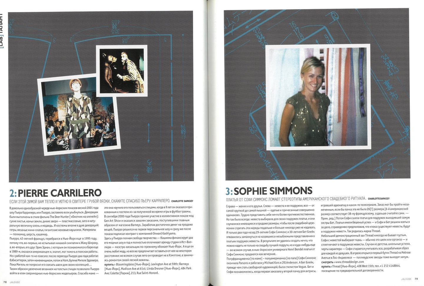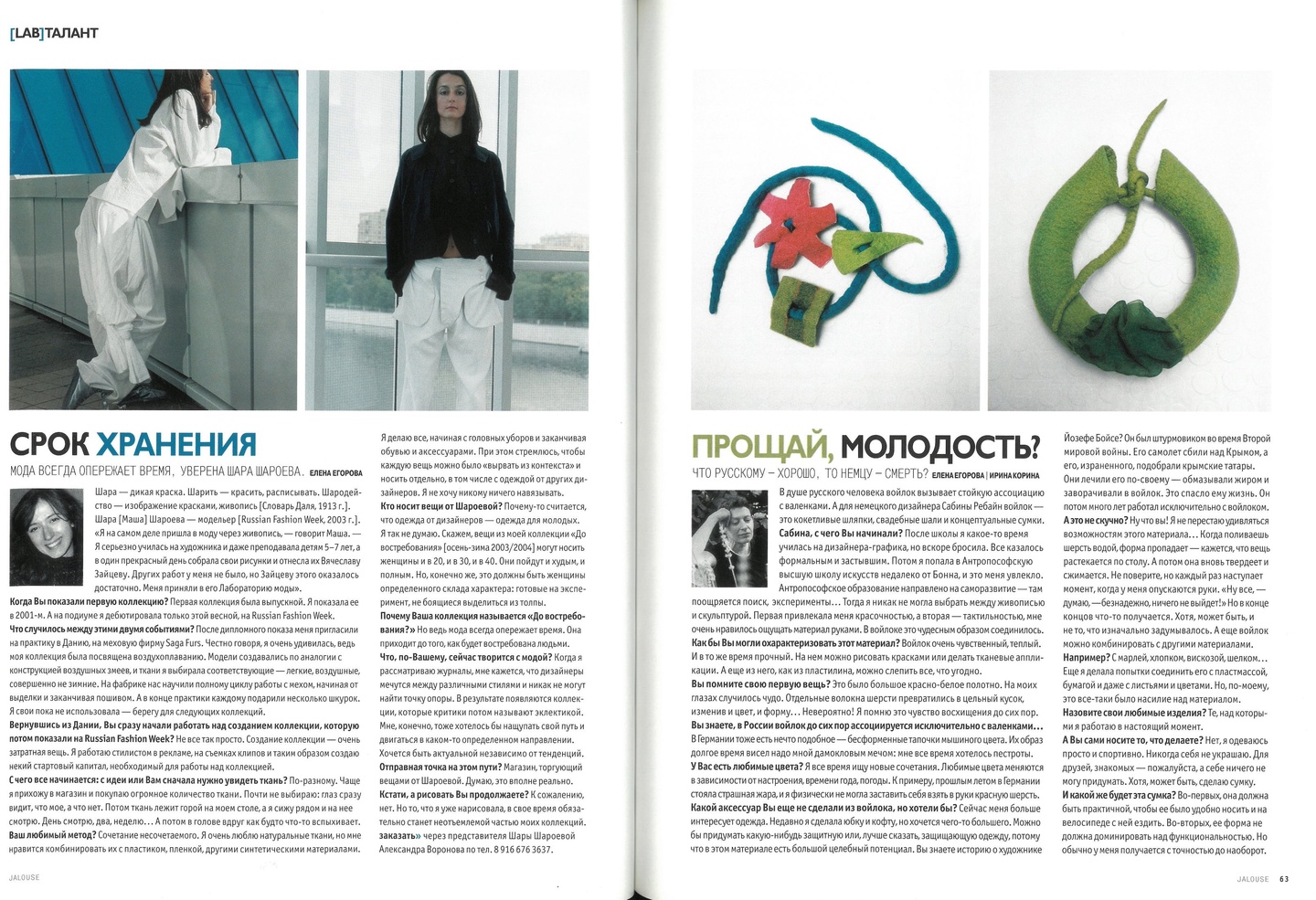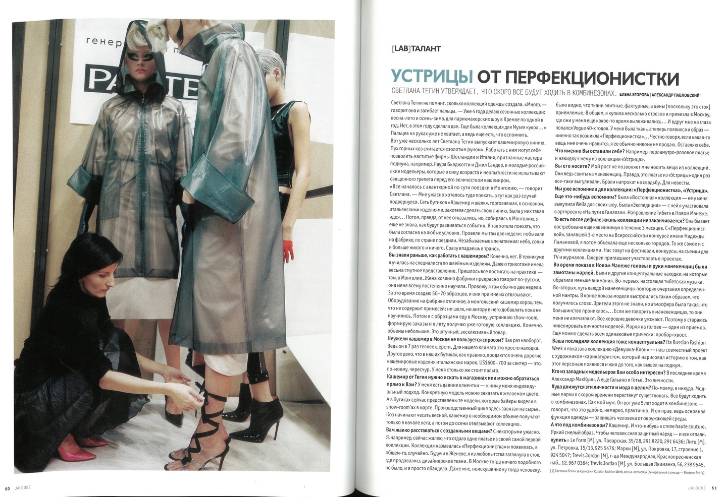 Интервью с дизайнерами: Светлана Тегин (Россия), Шара [Маша] Шароева (Россия), Сабина Ребайн (Германия) в Jalouse, декабрь–январь 2003-2004