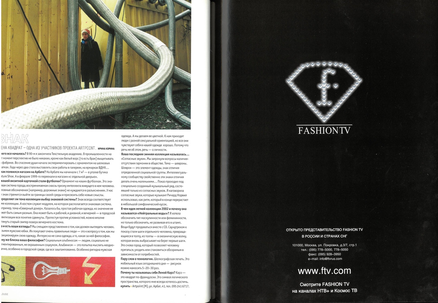 Интервью с дизайнером: Владимир Горшков (Россия) в Jalouse, сентябрь 2002
