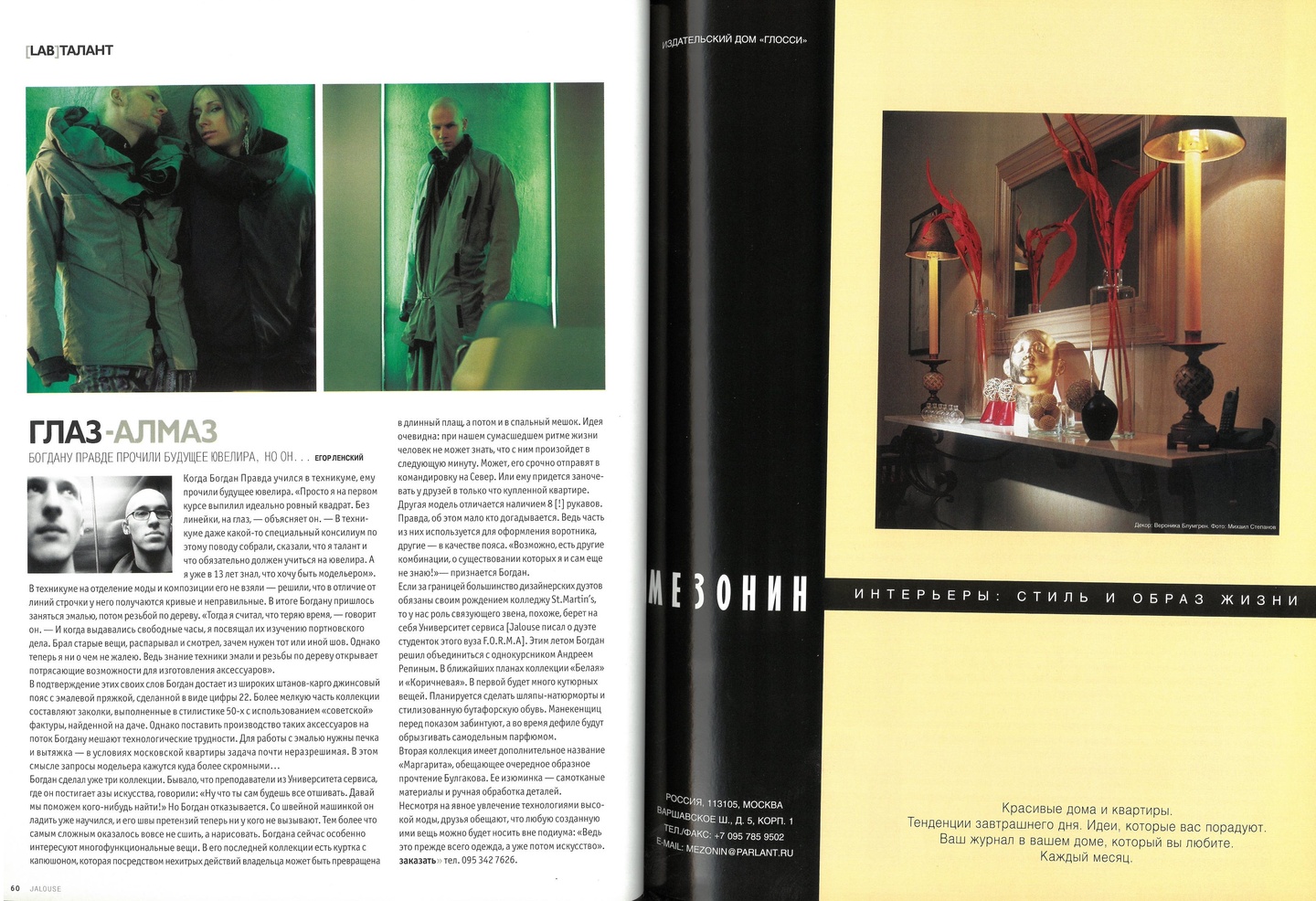 Интервью с дизайнерами: Богдан Правда (Россия), Наташа Конюкова (Россия) в Jalouse, ноябрь 2003