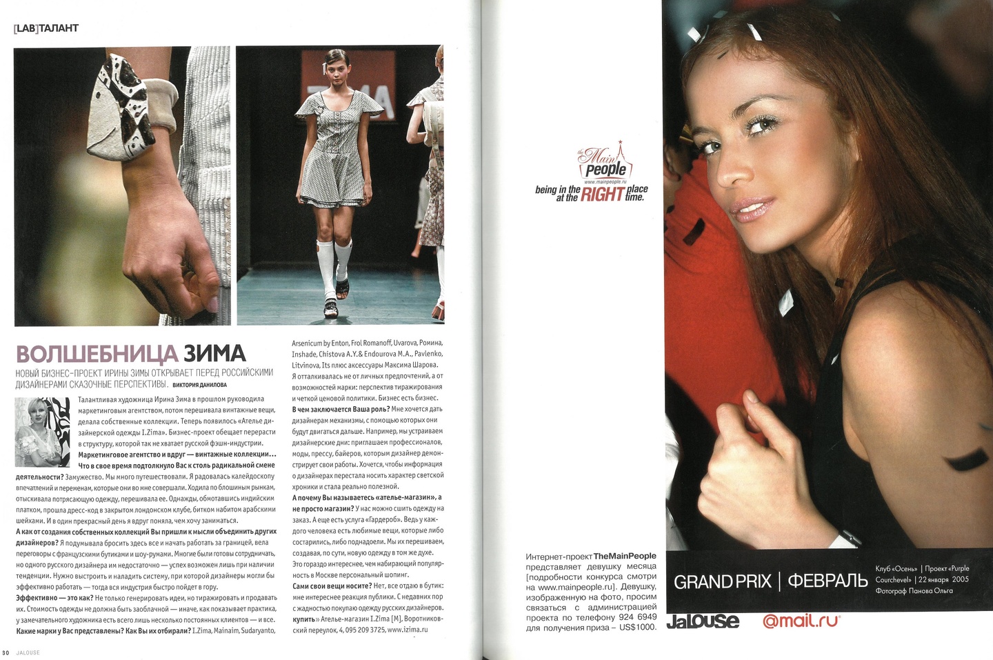 Интервью с дизайнерами: Ирина Зима (Россия), Юля Галямова (Россия), в Jalouse, ноябрь 2001