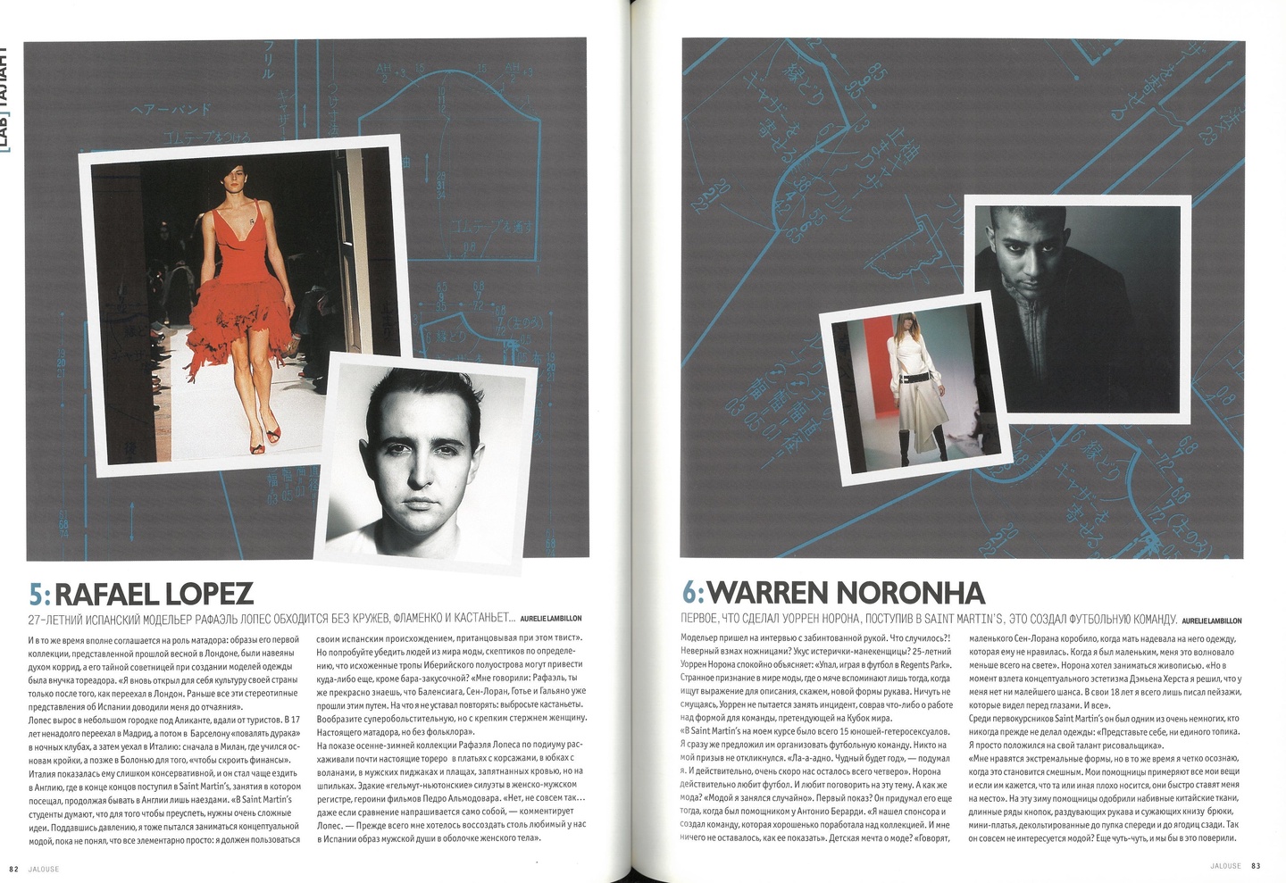 Кстати, для уже состоявшихся звезд в журнале существовала отдельная рубрика [LAB]Мэтр, в которую наряду с Пако Рабанном и Соней Рикель в разные годы попадали такие дизайнеры как Виктория Андреянова, Валентин Юдашкин и Игорь Чапурин.
