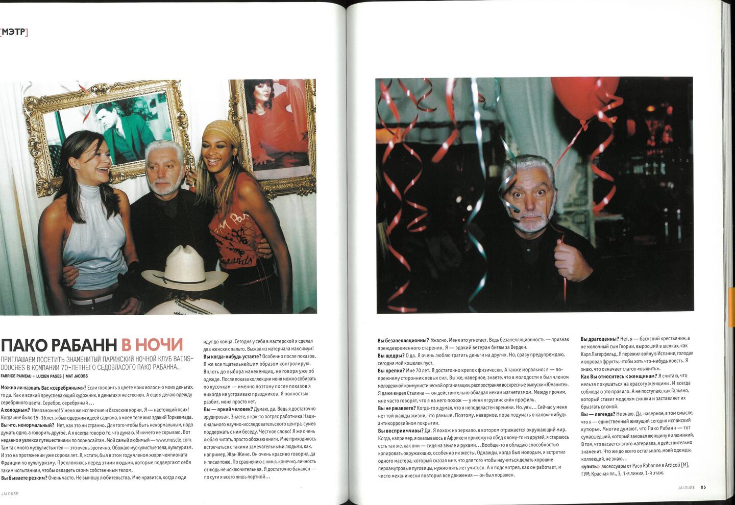 Рубрика [Мэтр] с интервью с Пако Рабанном (ноябрь, 2001), Соней Рикель (ферваль, 2002) и Аленой Ахмадуллиной (май, 2004)
