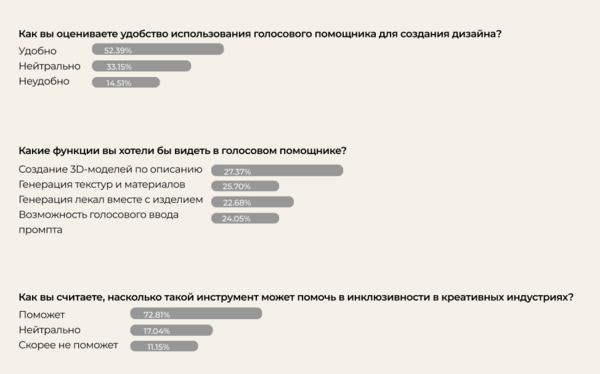 - Голосовой интерфейс и распознавание речи - 3D-генерация изделий одежды по голосовому промпту - Режим «Только голос»: общение с ботом используя только аудио сообщения - Интеграция с API Screen Readers (TalkBack, VoiceOver) - Контрастный интерфейс и яркие кнопки (адаптация для слабовидящих)