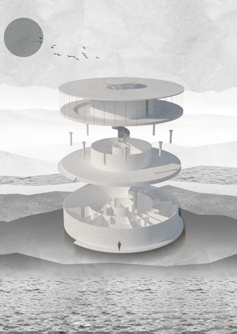 Design project for a conceptual nft-art gallery restaurant «non», a confidential space for networking, accessible only by boat, whose architectural and interior solutions were inspired by the Japanese architect Toyo Ito. Smooth shapes, fluidity and modernity are all reflected in the «non» restaurant design.