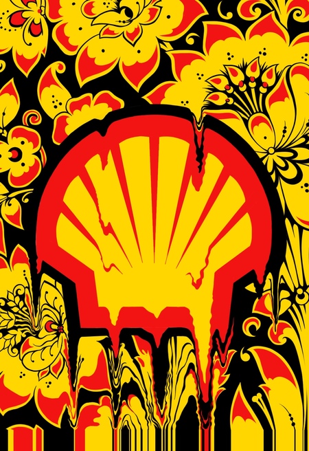 Русская культура сейчас претерпевает большие изменения. Хорошие ли они или плохие? Я даю возможность смотрящему решить это самому. Цвета традиционной русской росписи хохломы и логотипа компании Shell идеально дополняют друг друга, символизируя взаимодействие двух культур. Акрил, холст 120×80