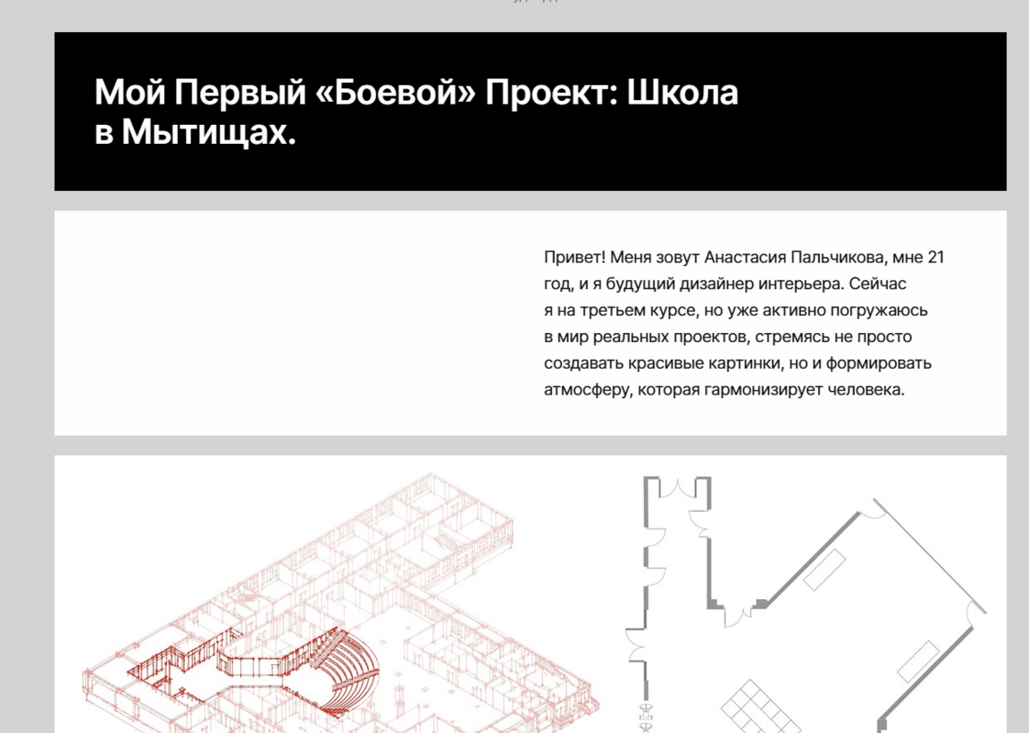 Для статьи: Промпт: «Напиши статью от первого лица о дизайнере интерьера Анастасии Пальчиковой, ее проекте школы в Мытищах, философии „дизайна с душой“ и использовании цвета.» Влияние: Позволил быстро получить структурированный и логичный черновик, который стал основой для дальнейшей доработки.
