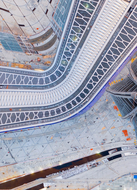 Здание 462-метровой башни является композиционным центром и главным акцентом комплекса. В плане башня представляет собой пятиконечную звезду, лучи которой расходятся от центрального ядра. Направление этих лучей легло в основы модульной сетки.