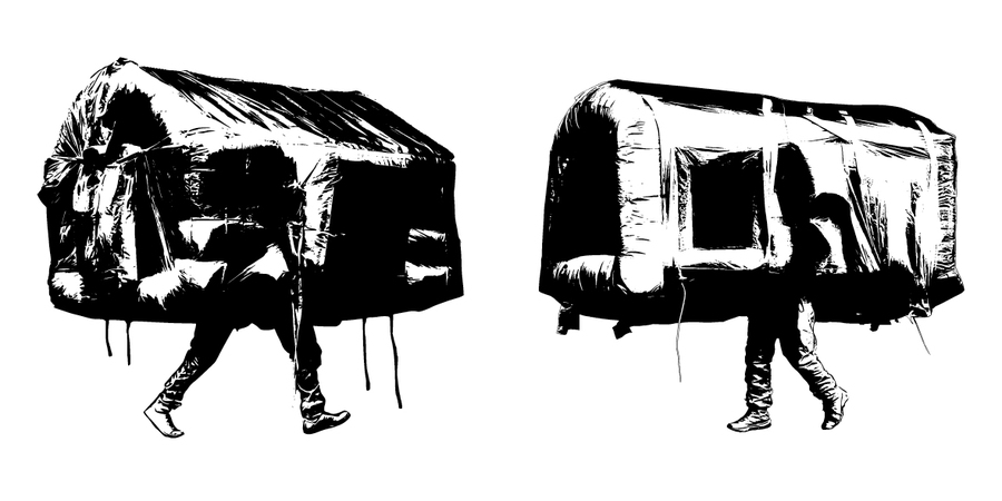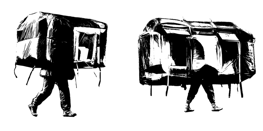 Серия цветных принтов разработана на основе документальной фотографии временных убежищ нео-номадов.