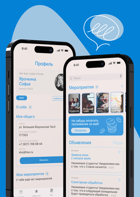 Приложение для общежития помогает следить за важными объявлениями, находить студенческие мероприятия, а самое главное — оптимизирует быт в общаге, делая коммуникацию с соседями более приятной. Теперь твои вещи не будут доставать из стиралки без спроса, а соседка не забудет скинуть деньги за туалетку!
