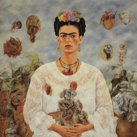 В завершающей серии генерации изображений представлены автопортреты Фриды Кало 21 века в жанре наивное искусство или фолк-арт, выполненные в разнообразно составленной композиции. В финальных изображениях удалось отобразить и сохранить стиль самой художницы. Генерации получились очень аутентичными и концептуальными, с сохранением исходной темы оттенков, палитр и фактур творчества автора. В изображениях получалось поиграть с деталями, элементами, добавить на фон животную и растительную фауну: бабочек, котов, листья растений, цветы. Также добавили в автопортреты художницы сочетающиеся с образами аксессуары: ободки на голову, серьги и различные колье.