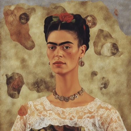 Используя пример кода, нужно обучить генеративную нейросеть Stable Diffusion: Задача нарисовать изображения адаптированные и отражающие стиль художницы Фриды Кало. Визуализировать, как выглядел бы автопортрет Фриды Кало 21 века в жанре наивное искусство или фолк-арт, при этом придерживаясь изначальных стилевых особенностей в манере написания автора.