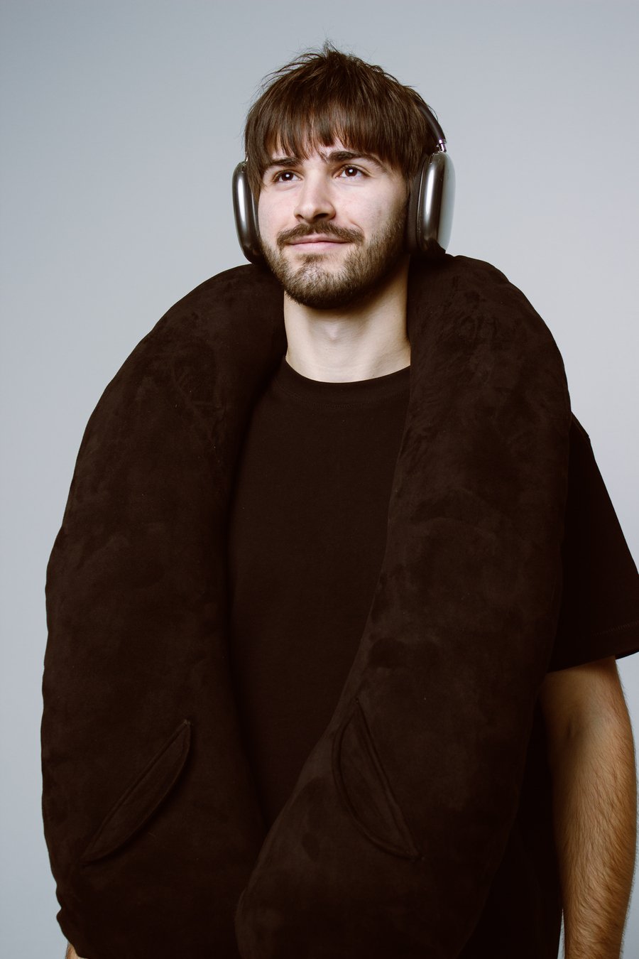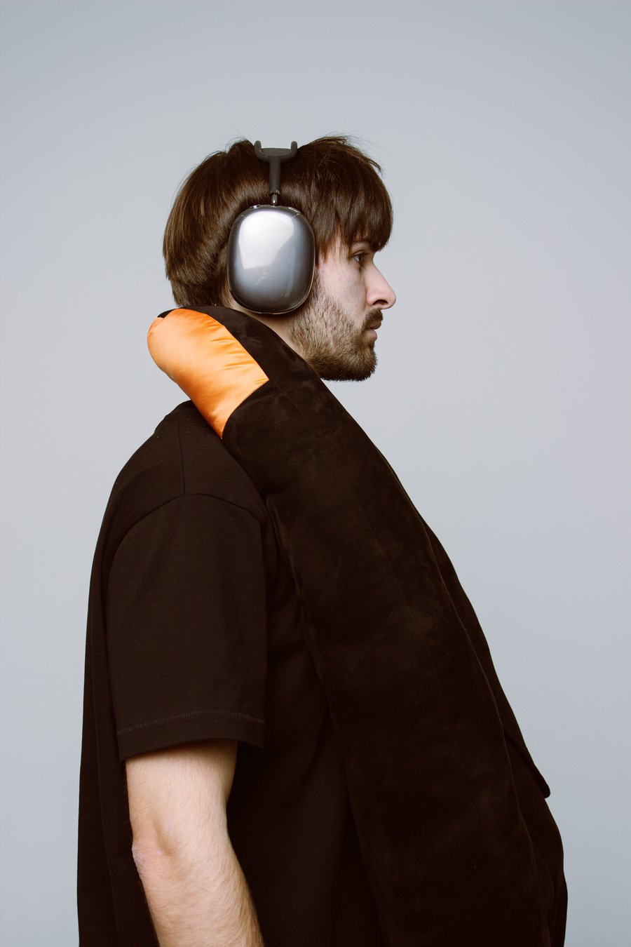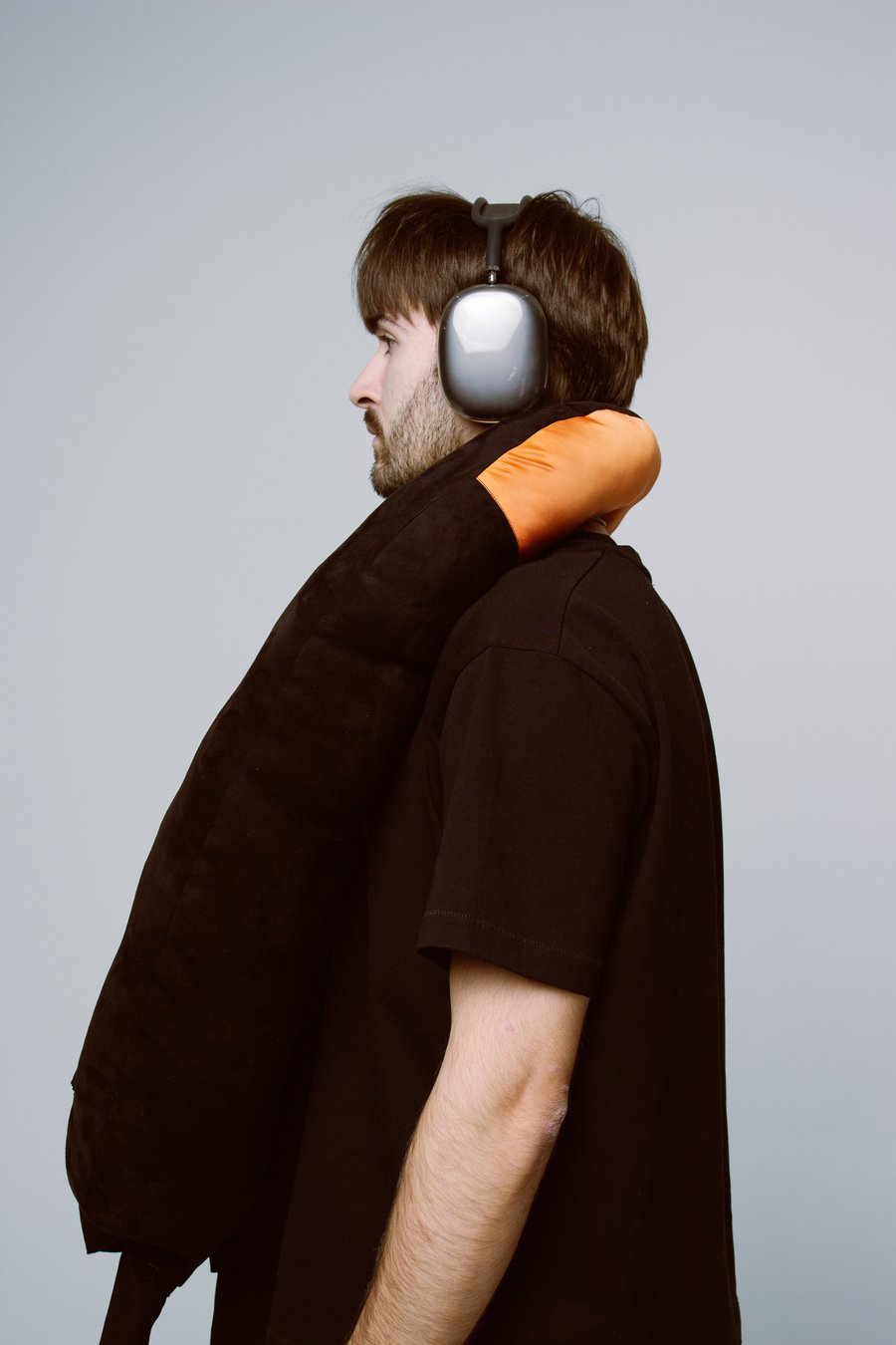 Вдохновением послужил типичный образ авиапассажира — человек в серых спортивных штанах, наушниках, в удобной верхней одежде и с подушкой для шеи. Объединив все эти элементы комфорта и практичности в одном предмете: получился «бомбер-подушка». Это гибрид верхней одежды и дорожной подушки — по форме и размерам как бомбер, но с мягкой структурой, манжетами, оранжевой подкладкой и брелком на рукаве.