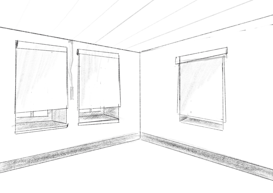 Рисунок интерьера (аудитории). Фронтальная перспектива. Перспектива с двумя точками схода.