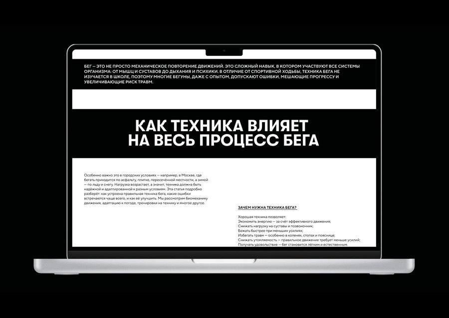 Лонгрид, посвященный бегу и ориентированный на продвинутых любителей. Основная цель — просветительская: наиболее полное освещение темы, создание обширного медиа, закрывающего наиболее актуальные и полезные вопросы бегунов.