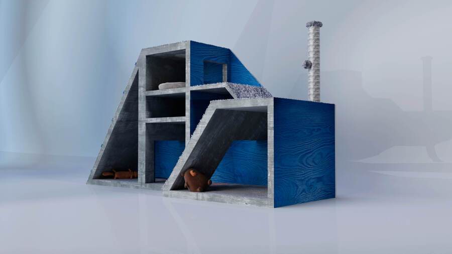 Основные цвета выбраны исходя из спектра зрения кошек и собак — синий и серый.