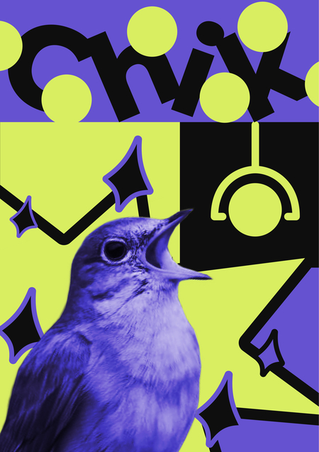 Анимированный веб-плакат для платформы, объединяющей мир музыки и птиц, где пернатые становятся артистами и слушателями одновременно