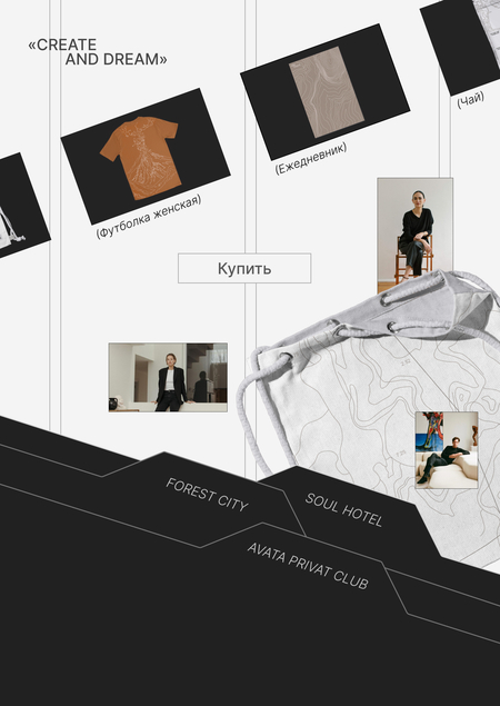Визуальная структура проекта подчёркивает гармонию архитектуры с природной средой: акцент на больших изображениях, чистое пространство и сдержанная типографика позволяют пользователю сосредоточиться на главном — ощущении единства человека, пространства и природы.