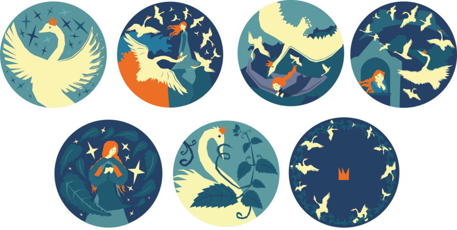 Проект представляет собой серию иллюстраций для тарелок фарфора, выполненную по сюжету сказки «Дикие лебеди».
