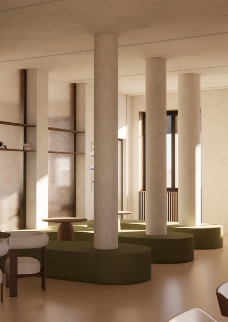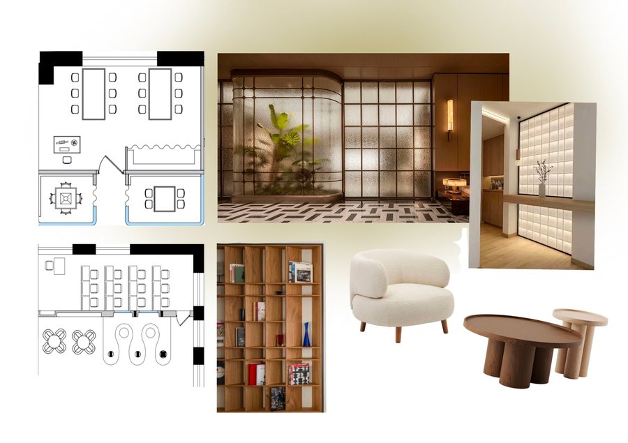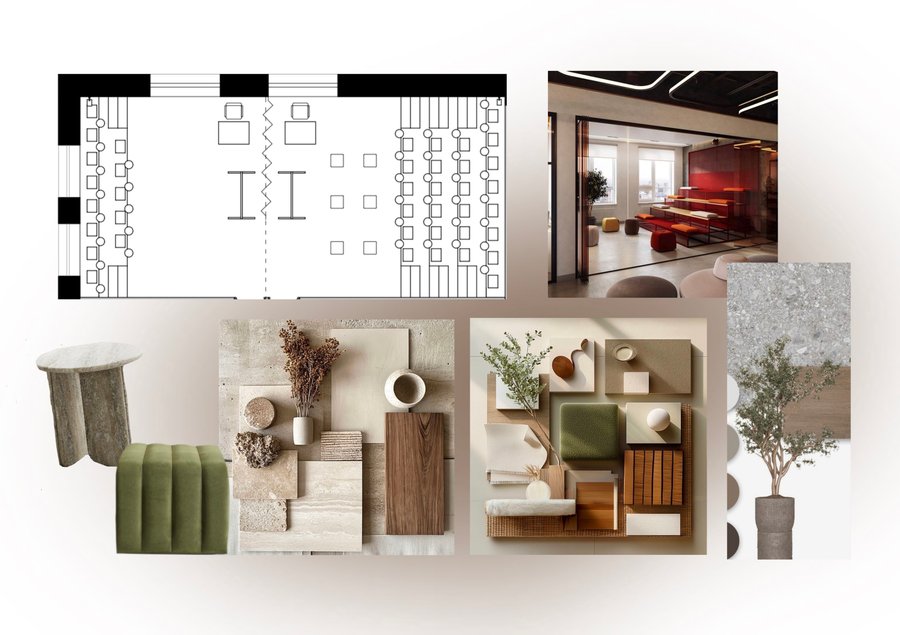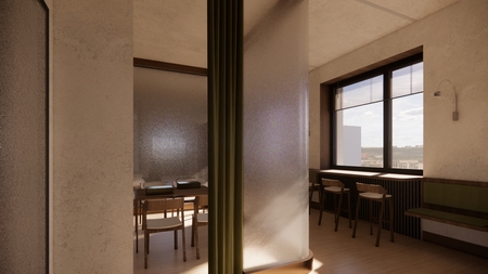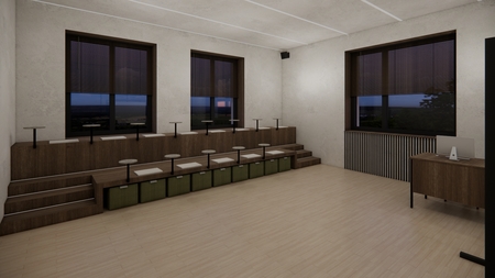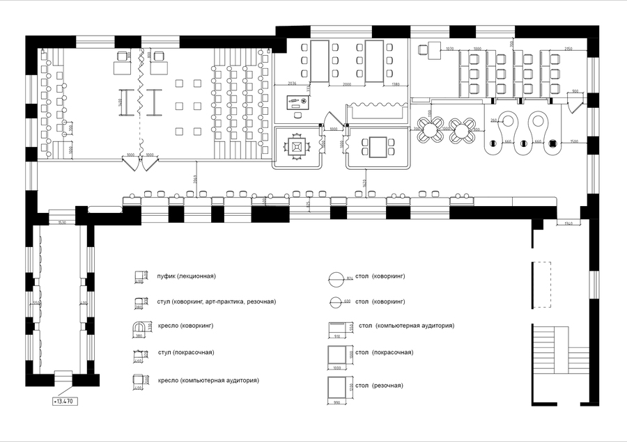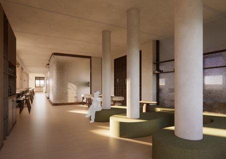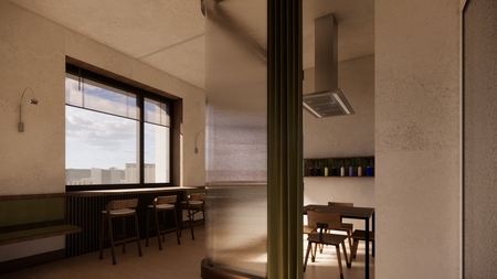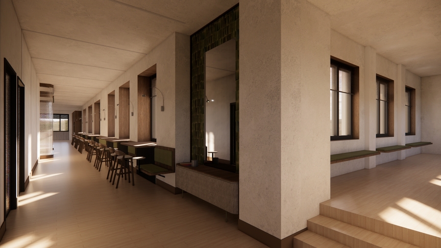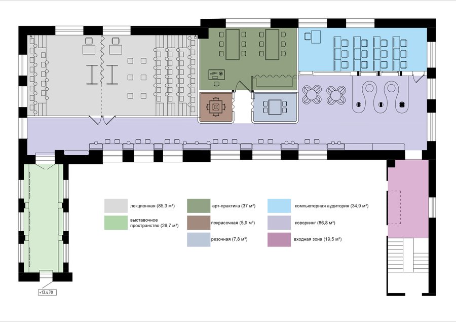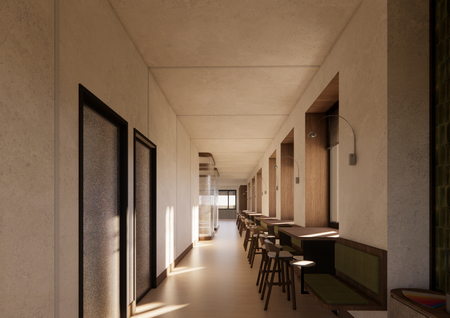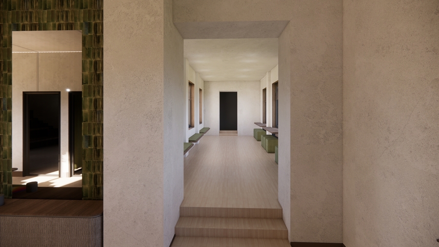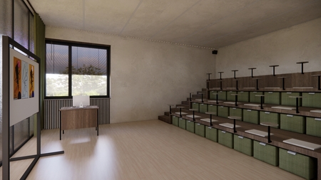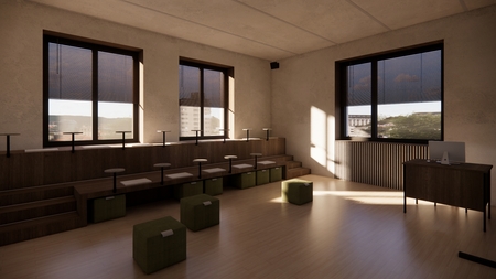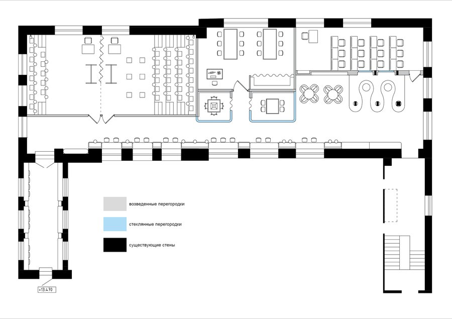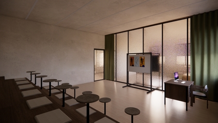 вид из прохода между стеклянными аудиториями/выход на коворкинг