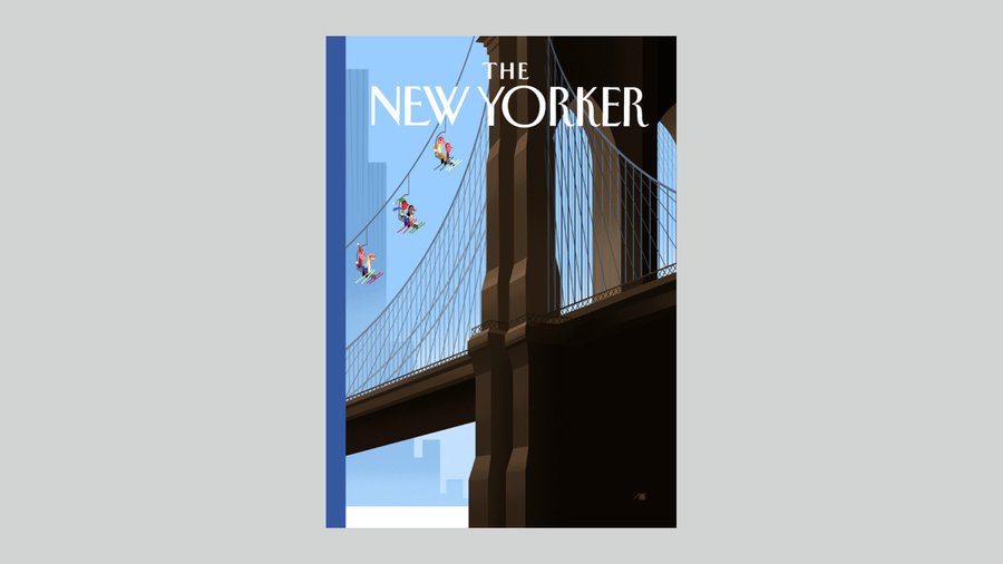 Если же обратиться к «Цифровому Бобу», то сразу можно заметить отсутствие обширного количества материалов и деталей. В качестве примера я решила представить вам обложки, которые Стэк создал для The New Yorker. В этом стиле он отказался от изначальной «хаотичности», придав своим работам большую динамичность и элегантность. Неровные, рваные линии сменились более плавными и уверенными. Цветовая палитра расширилась, включая как яркие, насыщенные тона, так и более сдержанные пастельные оттенки. Несмотря на разные временные промежутки создания, эти обложки демонстрируют узнаваемый почерк автора. Характерное искажение перспективы, игра с масштабом остаются признаками его стиля, но они представлены в более утончённой и продуманной манере.