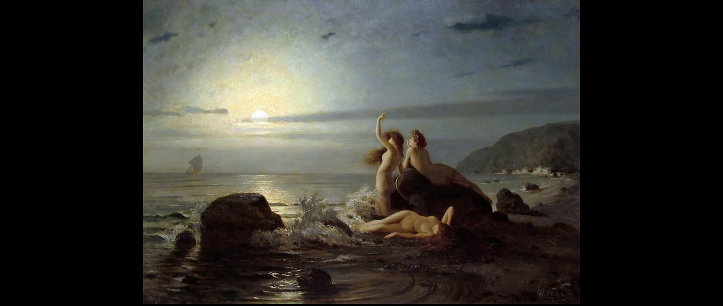 У. Этти, «Одиссей и сирены», 1787 — 1849; В. К. Штемберг, «Сирены у моря», 1863 — 1921; Г. Д. Дрейпер, «Одиссей и сирены», 1863 — 1920; Г. Д. Дрейпер, «Морская дева», 1863 — 1920; К. Эквалл, «Рыбак и сирена», 1843 — 1912 (дата обращения: 05.12.23)