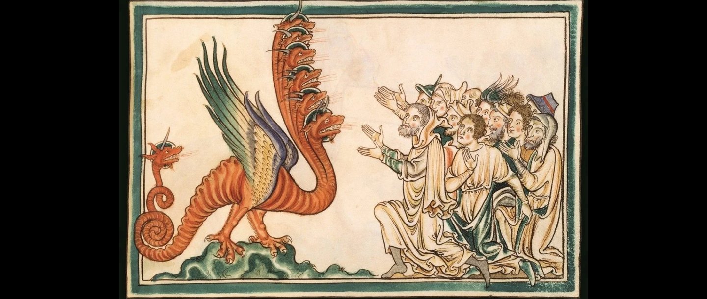 Поклонение дракону Апокалипсиса, Большой средневековый бестиарий, около 1250 г. (дата обращения: 06.12.23)