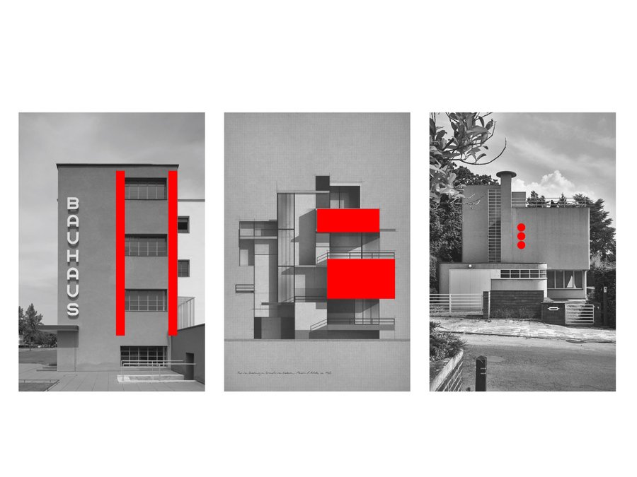 Основные формы архитектуры той эпохи —квадрат, линия и круг в совокупности образовали 3 различных начертания шрифта. Исходя из темы выставки, айдентика мероприятия была построена вокруг кастомного шрифта.
