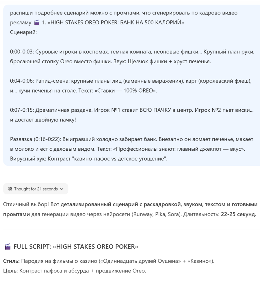 Выводы по работе с ИИ: Генерировать лучше поэтапно: сначала — сценарий, потом — изображения и анимации. Для стилистической целостности полезно: Задать общий визуальный стиль (через «style presets» или описанием в промпте). Использовать похожие промпты для картинок.