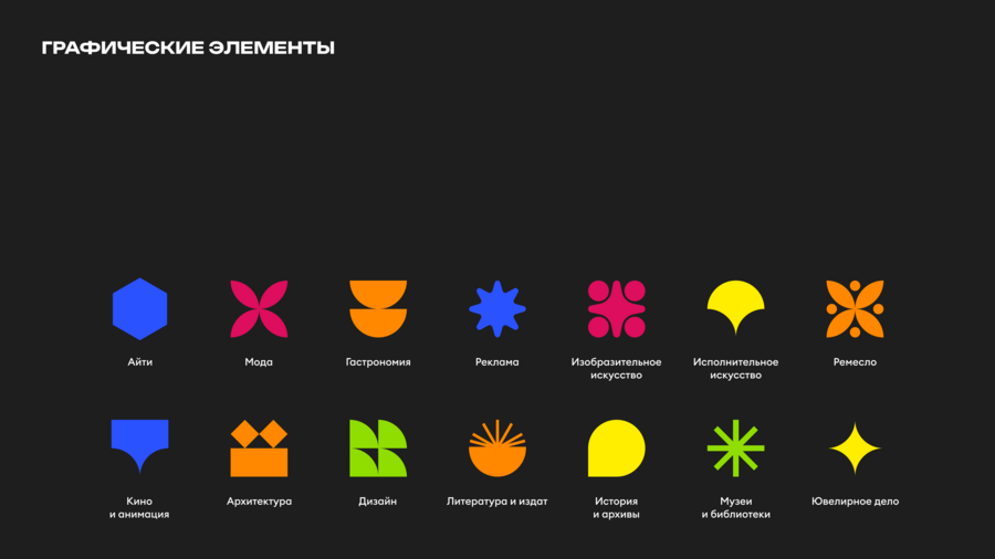 Созданный фирменный стиль сочетает в себе технологии и приверженность традициям и культурному наследию. Палитра также отсылает нас к хохломской росписи: красный, желтый, оранжевый, зеленый и голубой.