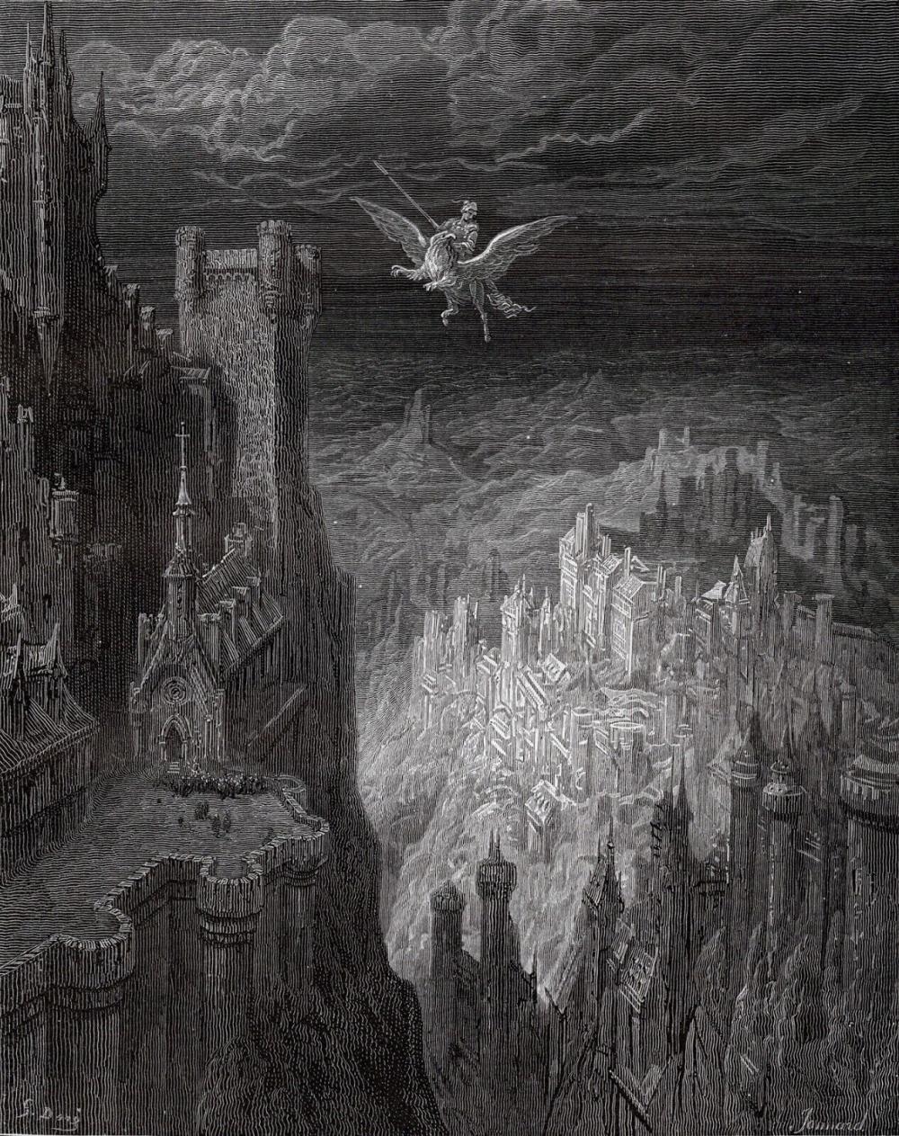 Работы Доре отличаются: 1. Высокой детализацией — он прорисовывал каждую линию, создавая сложные текстуры и глубину.