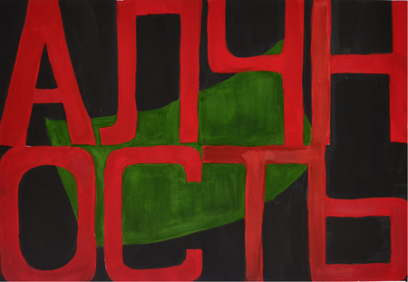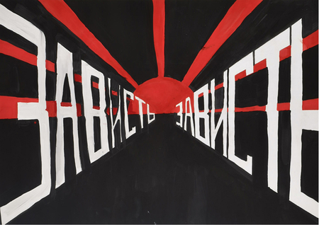 Серия работ «Исповедь» — замена идеологических лозунгов Булатова на некоторые из смертных грехов обнажает скрытый язык эпохи.
