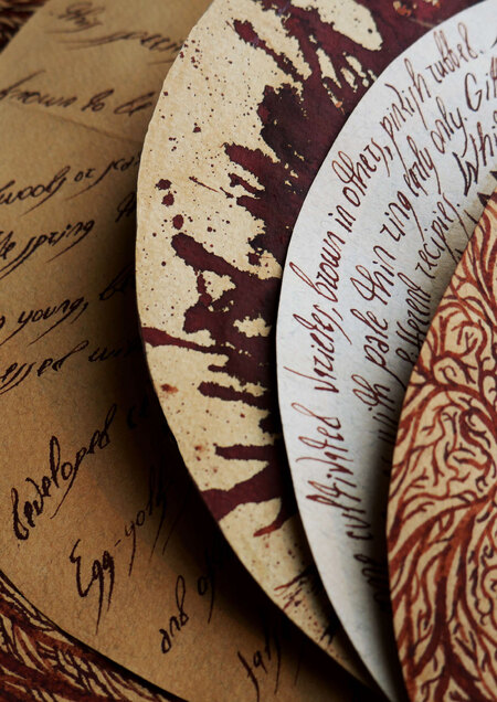 Для письма использовалось преимущественно тонкое перо, чтобы как можно подробнее передать множество мелких деталей.