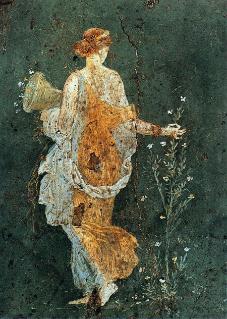 Флора, собирающая с рогом Изобилия, Помпеи — https://www.reddit.com/r/interestingasfuck/comments/spe50g/flora_woman_picking_flowers_with_a_cornucopia_in/?tl=ru