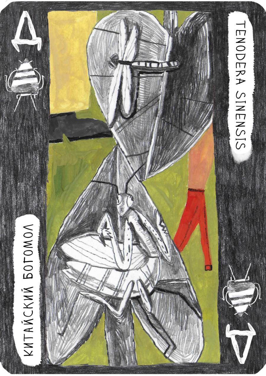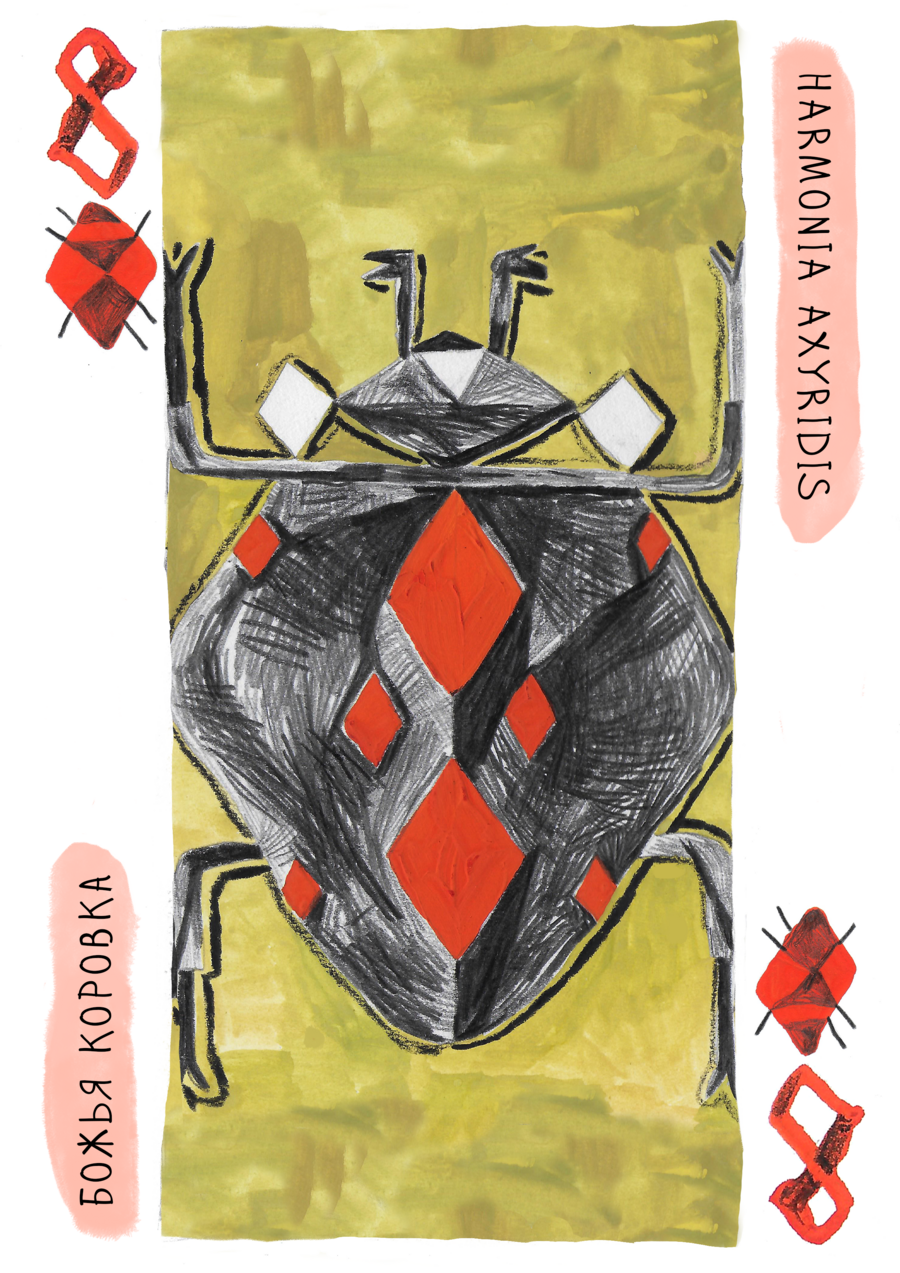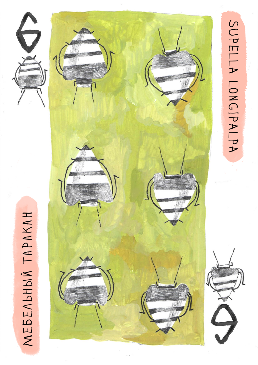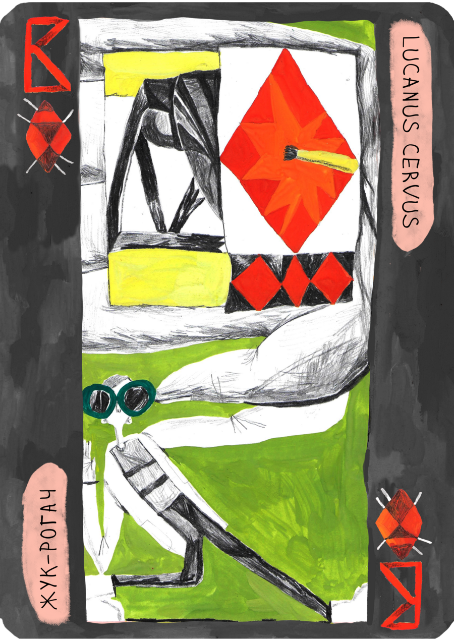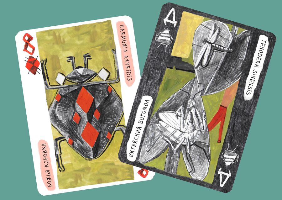 Игровая колода, посвящённая насекомым и взаимодействию людей с ними. Каждая масть отражает один из отрядов, каждая карта отдельного жучка. Все это не только воплощает в себе игровые элементы, но и погружает в энтомологию, науку о насекомых…
