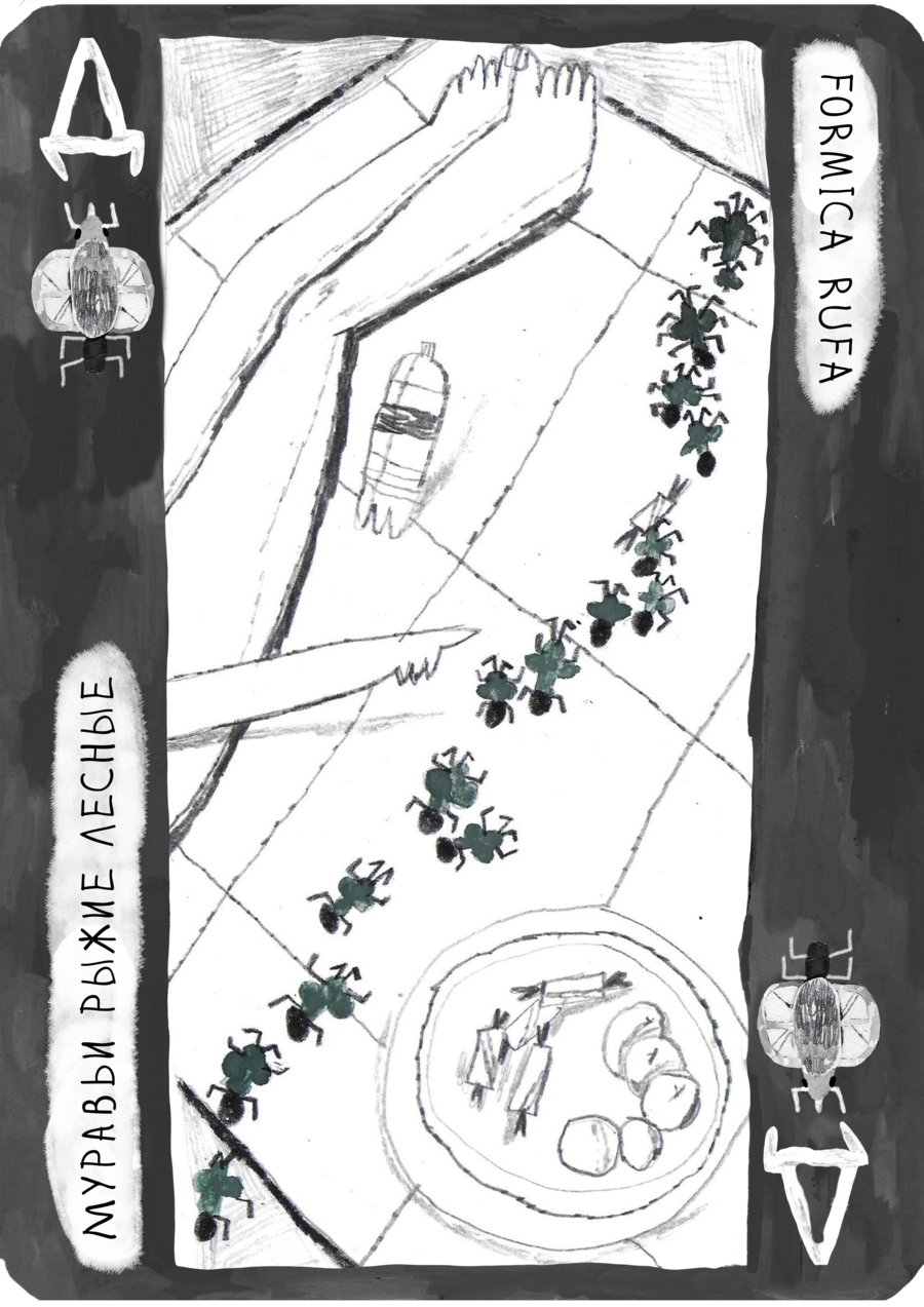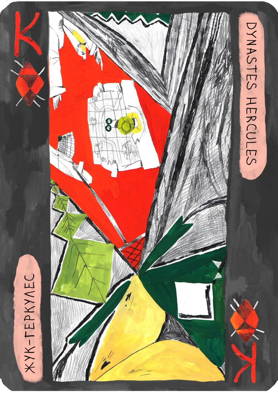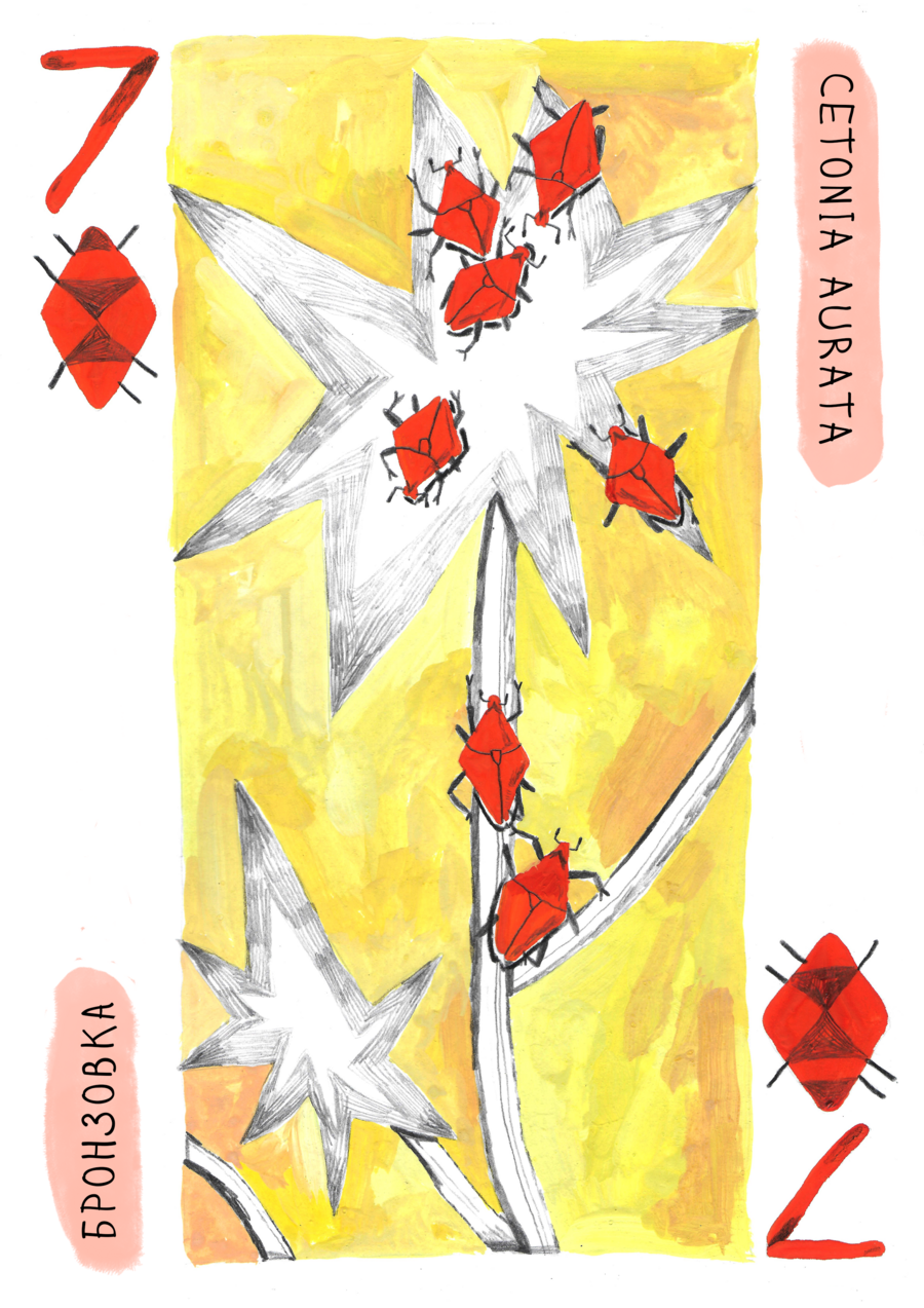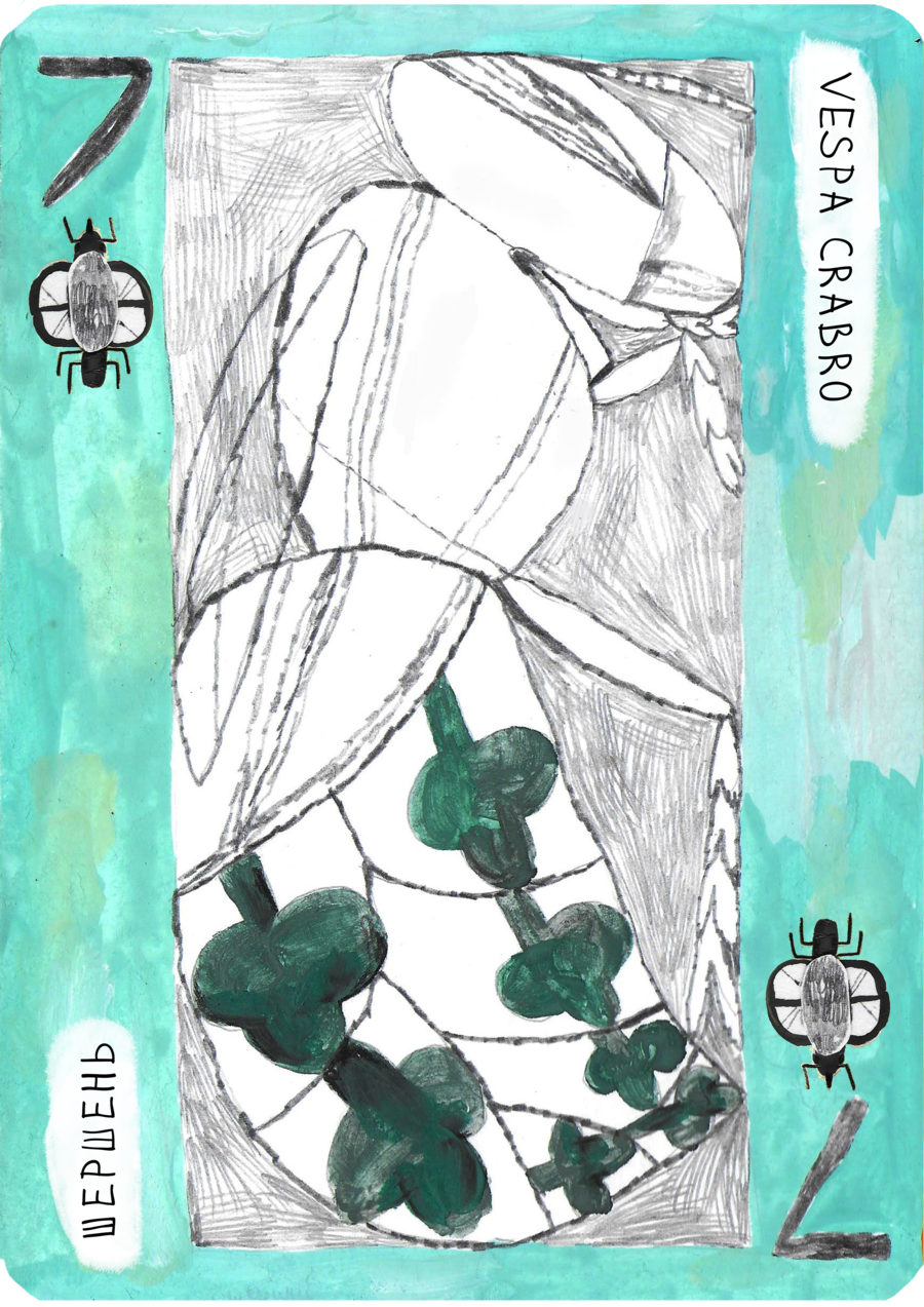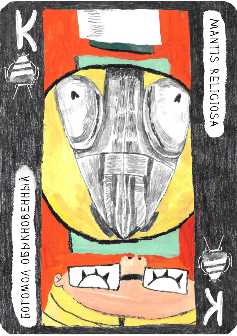Игровая колода, посвящённая насекомым и взаимодействию людей с ними. Каждая масть отражает один из отрядов, каждая карта отдельного жучка. Все это не только воплощает в себе игровые элементы, но и погружает в энтомологию, науку о насекомых…