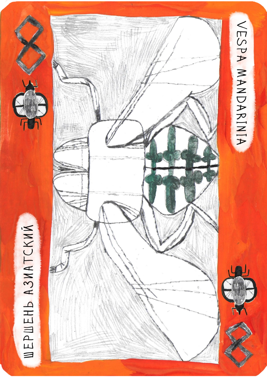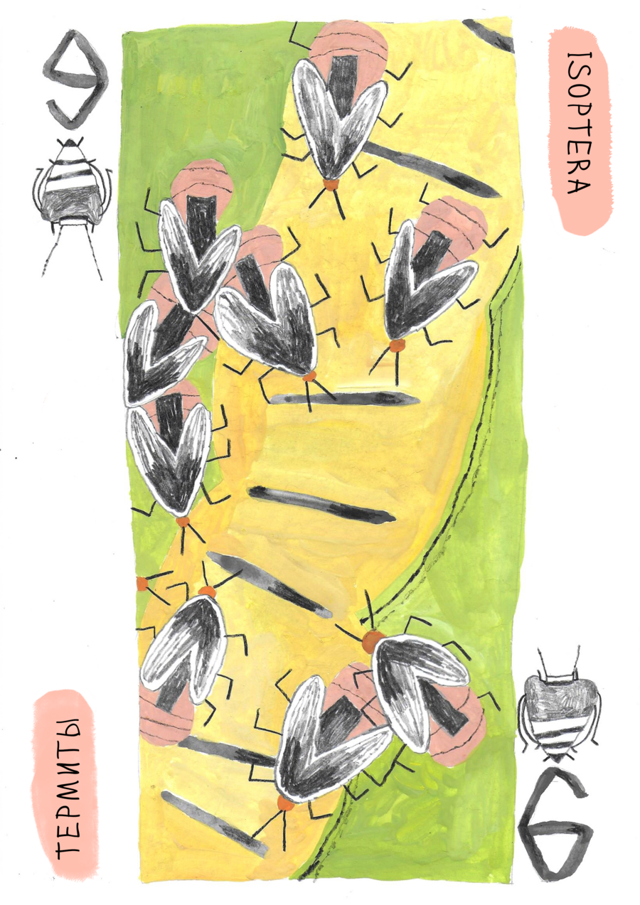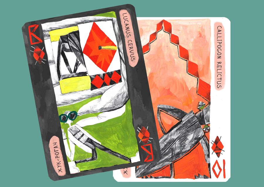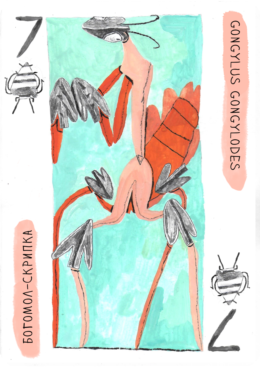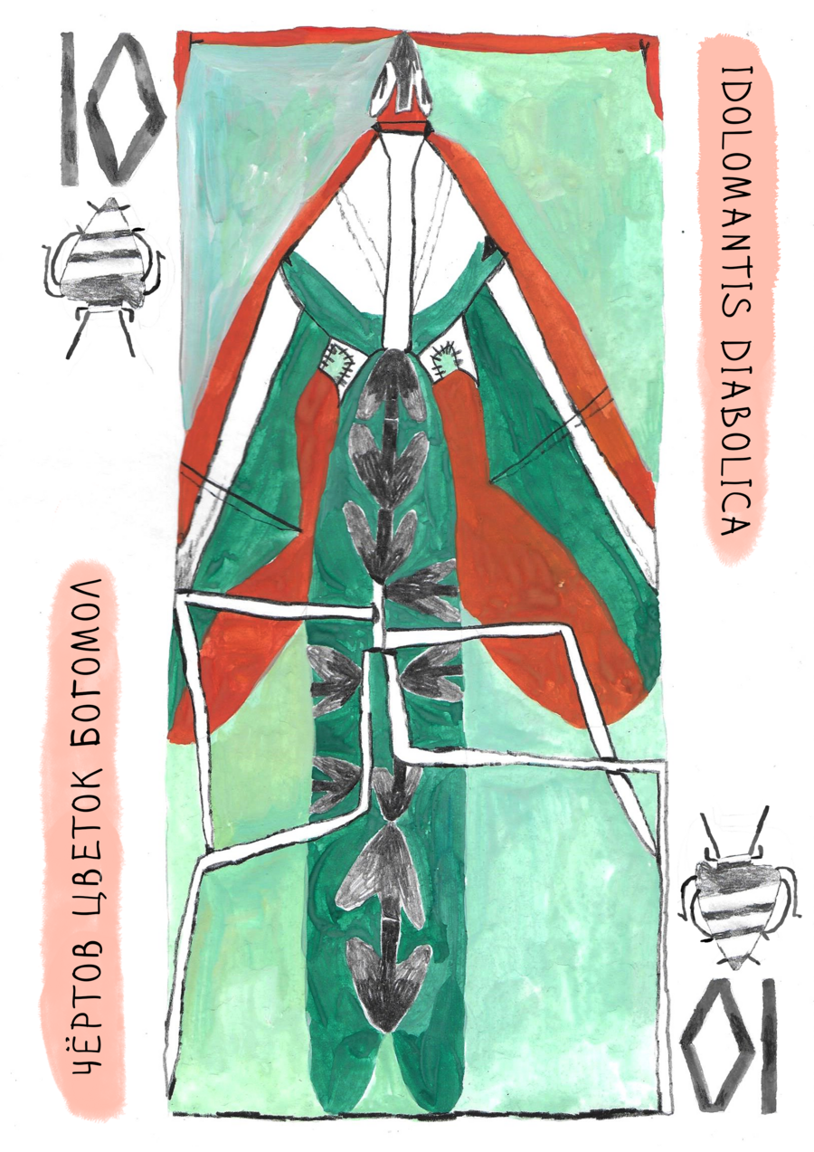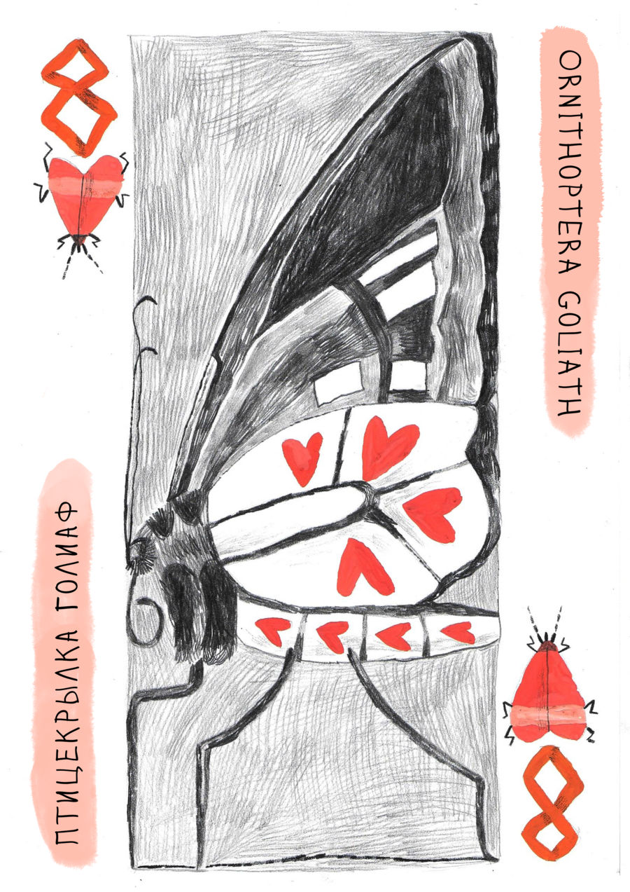 Игровая колода, посвящённая насекомым и взаимодействию людей с ними. Каждая масть отражает один из отрядов, каждая карта отдельного жучка. Все это не только воплощает в себе игровые элементы, но и погружает в энтомологию, науку о насекомых…