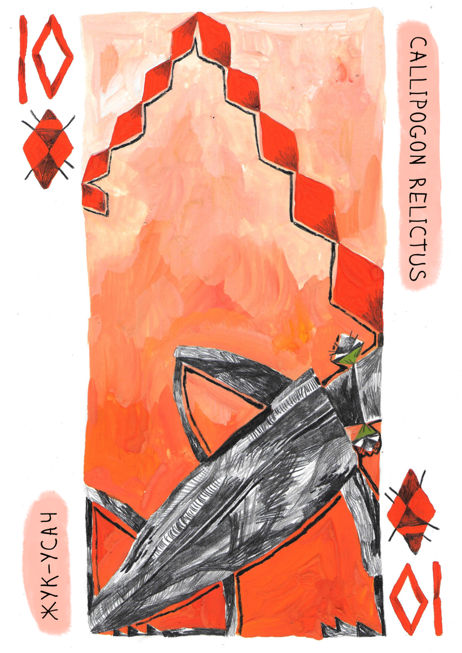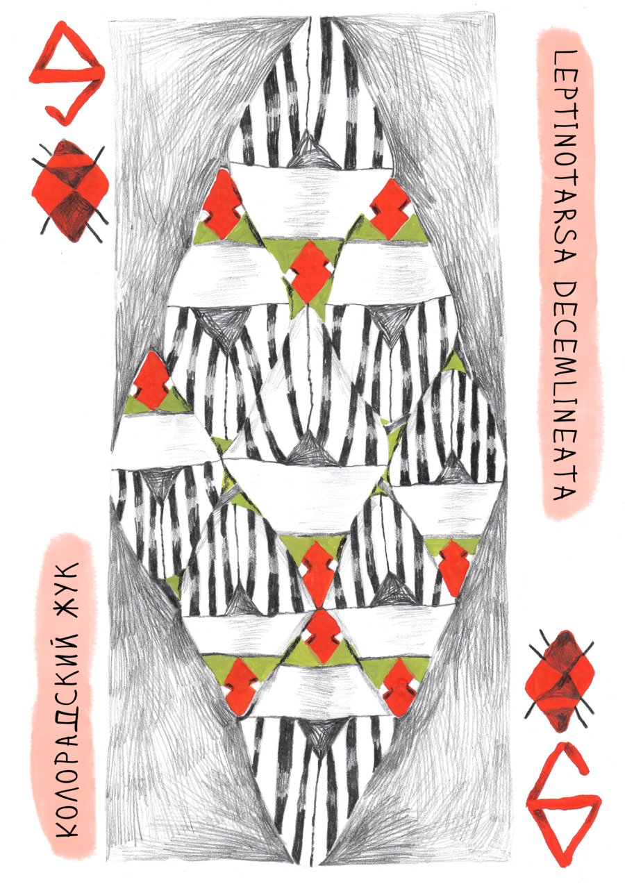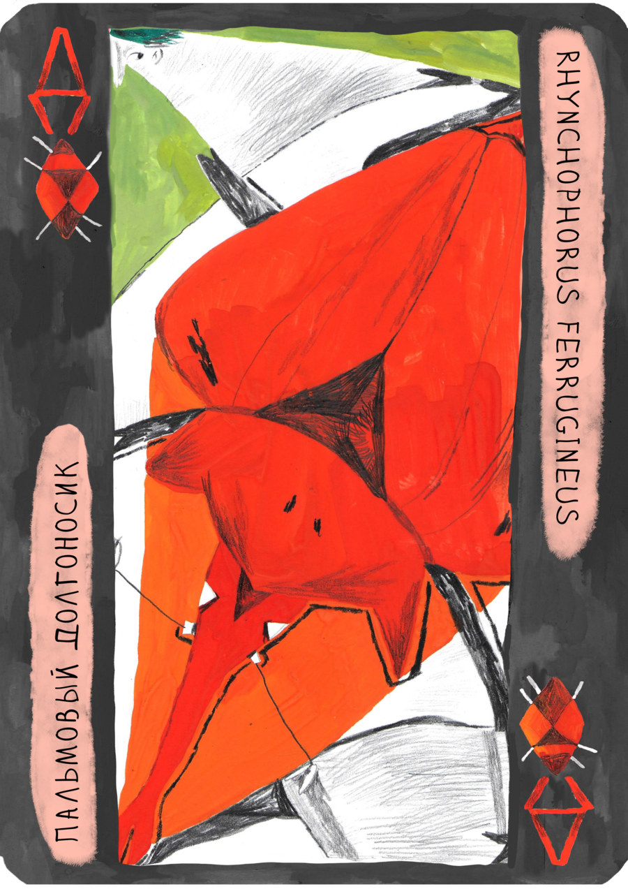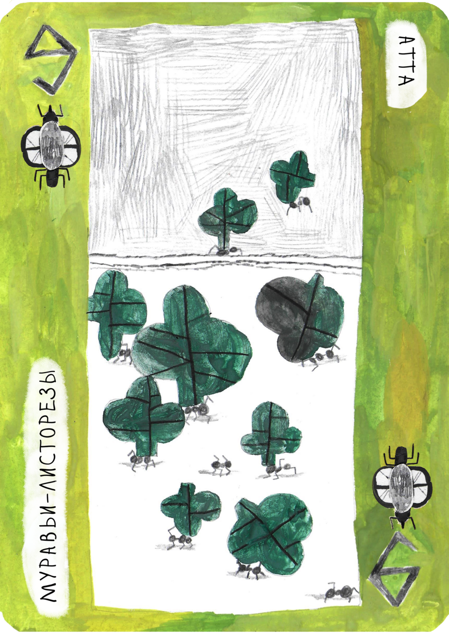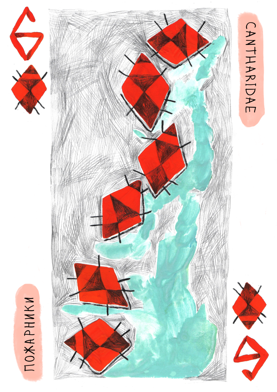 Игровая колода, посвящённая насекомым и взаимодействию людей с ними. Каждая масть отражает один из отрядов, каждая карта отдельного жучка. Все это не только воплощает в себе игровые элементы, но и погружает в энтомологию, науку о насекомых…