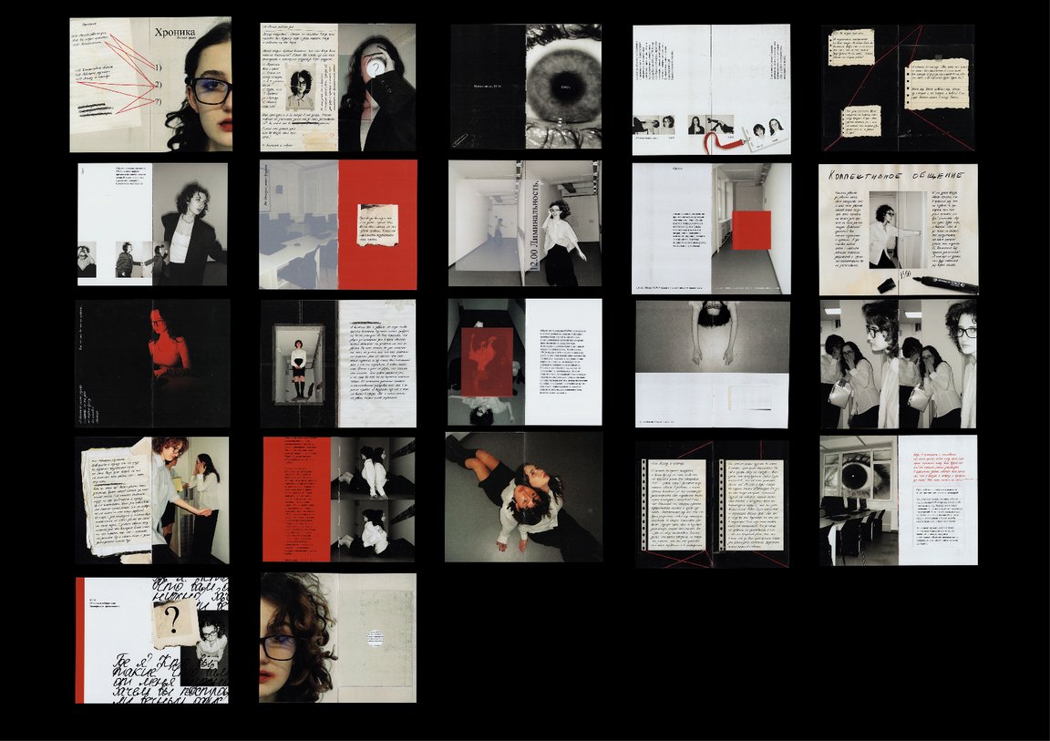 Chatgpt: /image prompt: business cards, surreal corporate style, archival document aesthetic, minimalist brutalist design, black red gray palette, grid layout, matte paper, flat lay