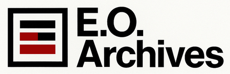Sora: minimalist logo for «E.O. Archives», concept store by E.O. Incorporated — surreal office-inspired media brand. brutalist, monochrome, archival aesthetic, geometric typography