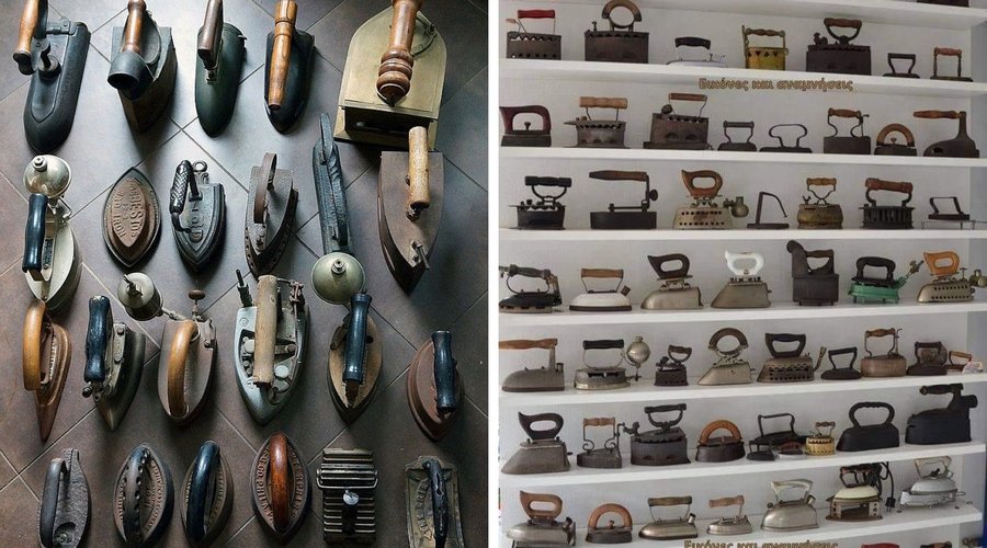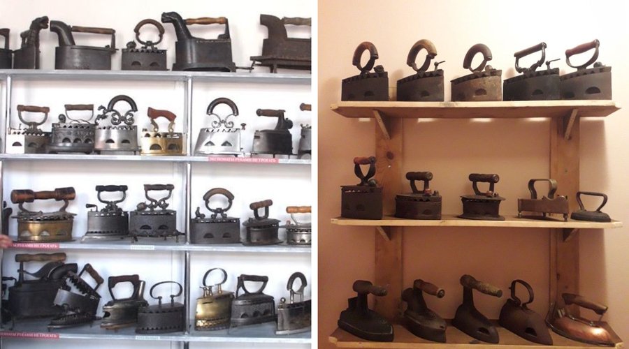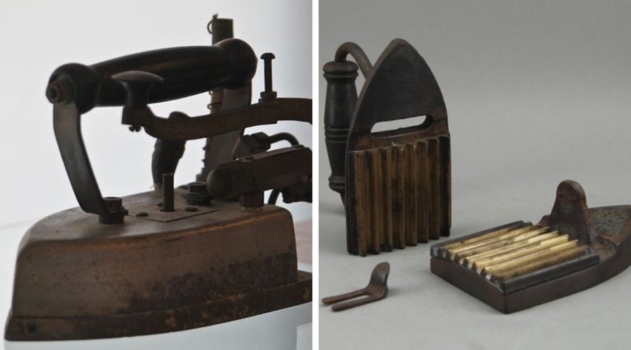 Эта коллекция показывает, как менялись утюги и устройства для глажки на протяжении последних двух столетий. До появления электричества утюги нагревали углём, на печи или спиртовой горелке, из-за этого они имели массивный корпус и разные технические решения.