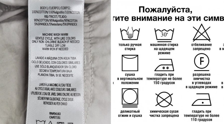Этикетки с инструкциями по уходу — это не просто формальность, а технический паспорт изделия. Они указывают, какую температуру глажки, стирки и сушки выдерживают конкретные волокна.